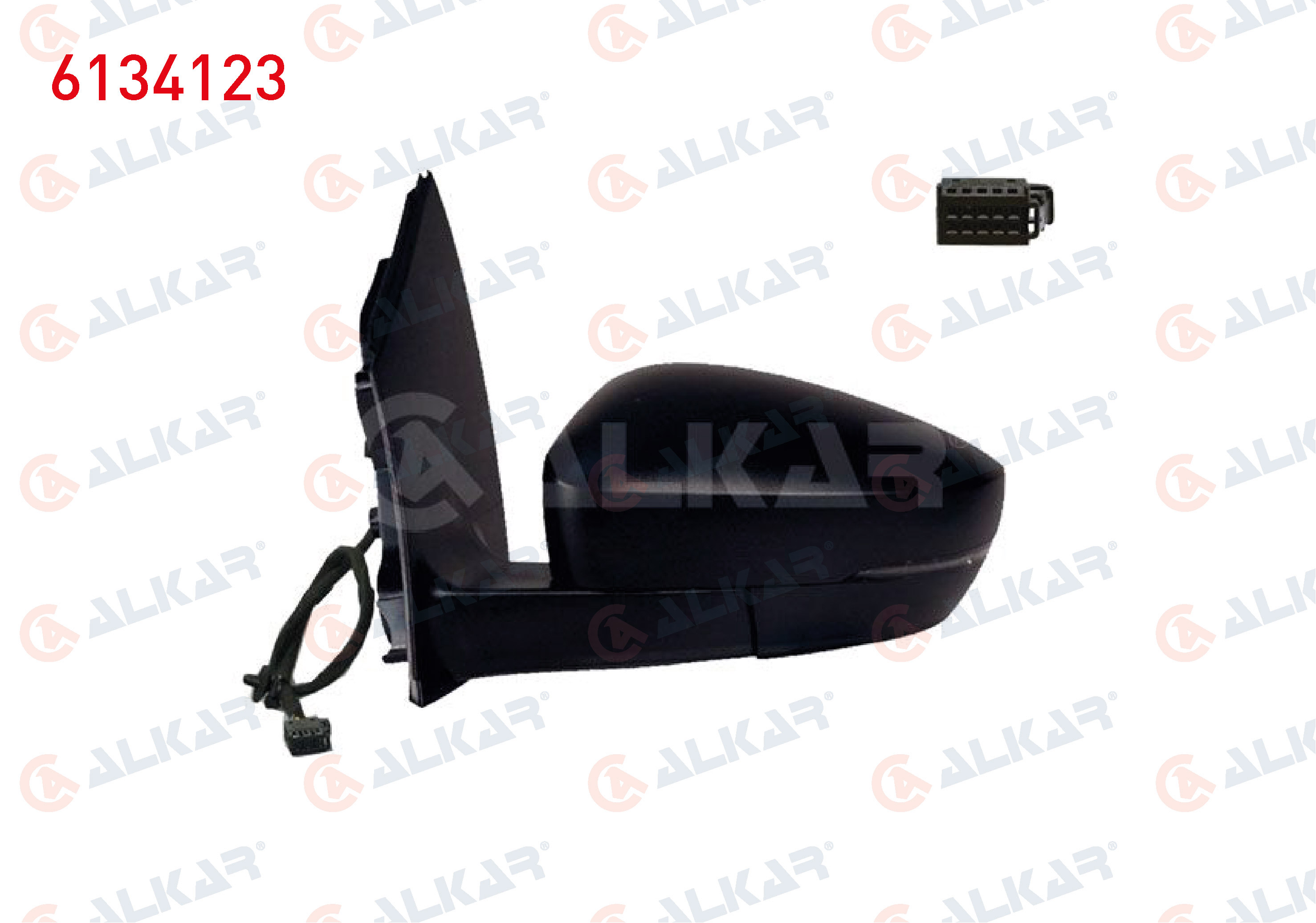 ALKAR 6134123 | Dış Dikiz Aynası Sol Elektrikli Asferık Isıtmalı Sinyalli Dıkdortgen Soketlı 6 Pin Volkswagen Polo (6R1, 6C1) 2010-2017