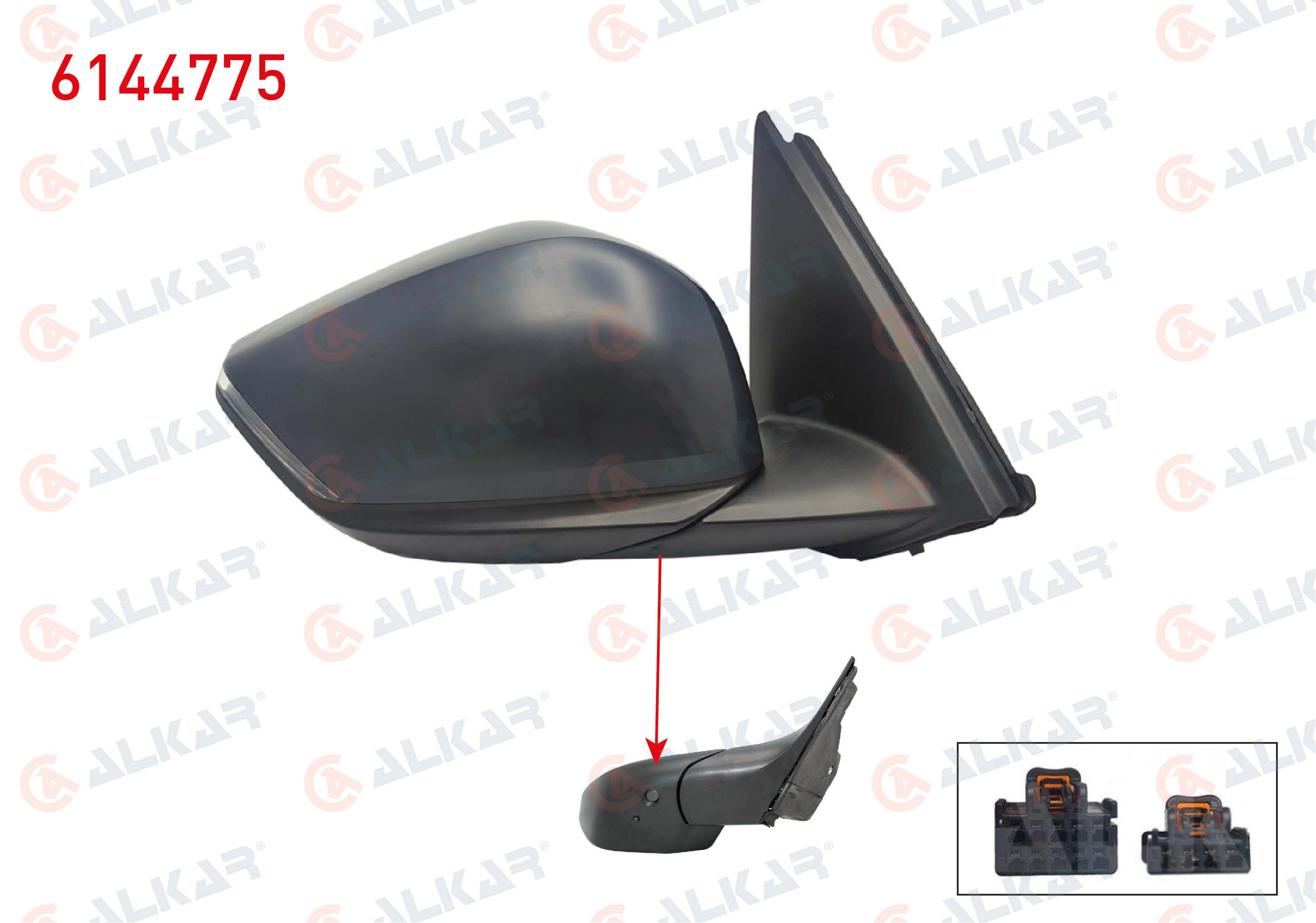 ALKAR 6144775 | Dış Dikiz Aynası Sağ Elektrikli Isıtmalı Astarlı Otomatik Katlanır Sinyalli Sensörlü Alt Aydınlatmalı Citroen 12 Pin C4 III 2020 -