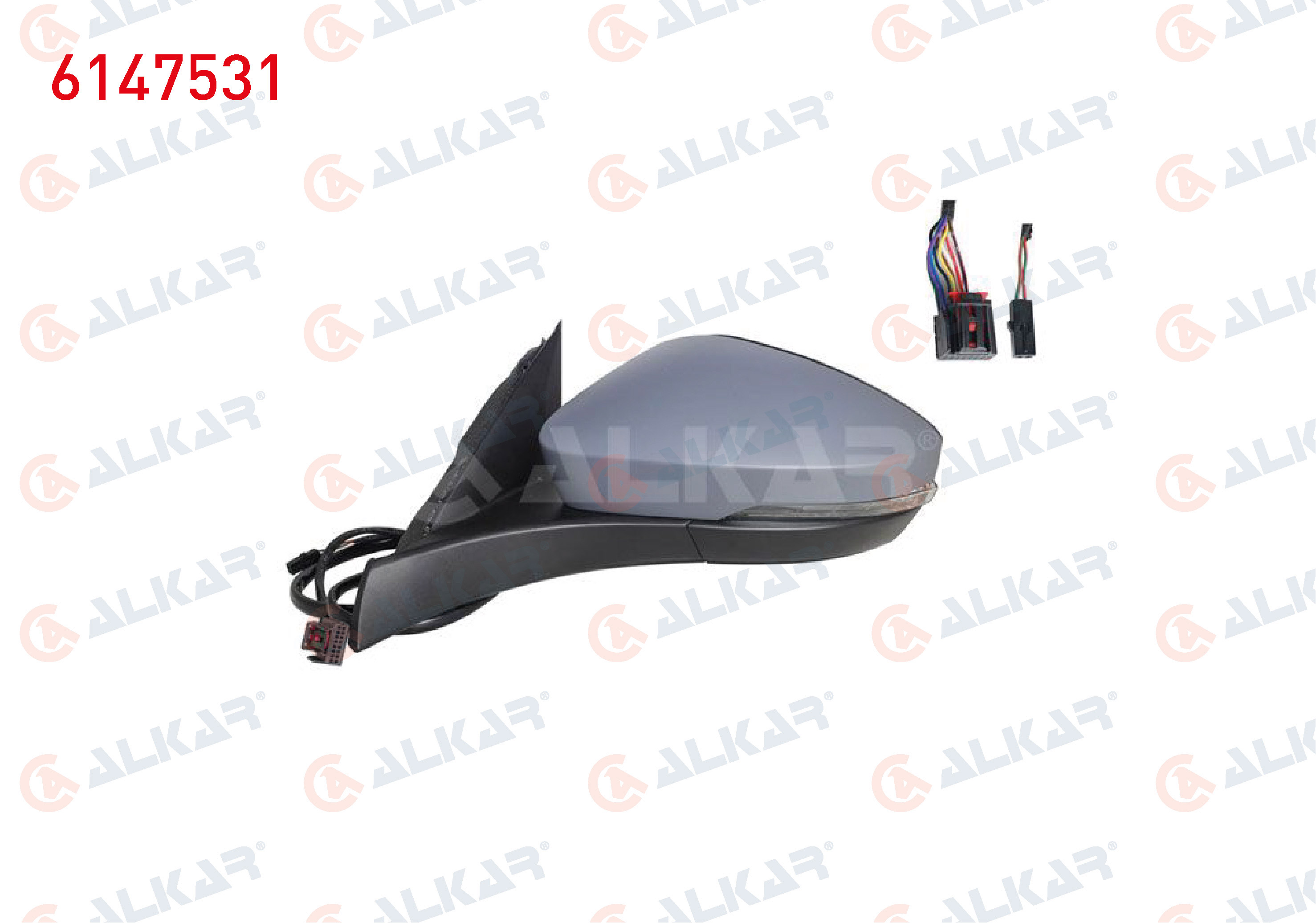 ALKAR 6147531 | Dış Dikiz Aynası Sol Elektrikli Asferık Isıtmalı Astarlı Otomatik Katlanır Sinyalli Alt Aydınlatmalı Kör Noktalı 9 + 2 Pin Volkswagen T-Roc (A11) 2017 -