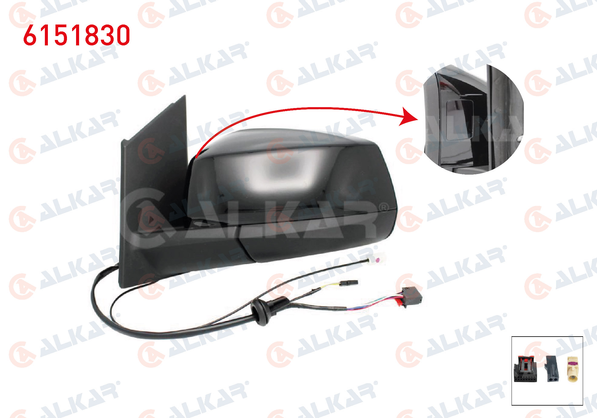 ALKAR 6151830 | Dış Dikiz Aynası Sol Elektrikli Isıtmalı Otomatik Katlanır Kör Noktalı Antenlı Parlak Siyah 7 + 2 Pin Ford Tourneo Connect 2022-/ Volkswagen Caddy V 2020 -
