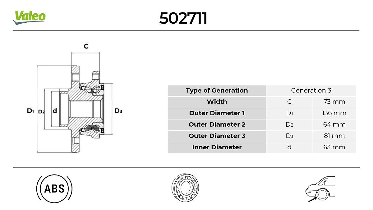 VALEO 502711 | Arka Teker Poryası ABS Sensörlü 5 Delikli Volvo Xc60 T5 T6 13 Xc60 D3 D4 10 17