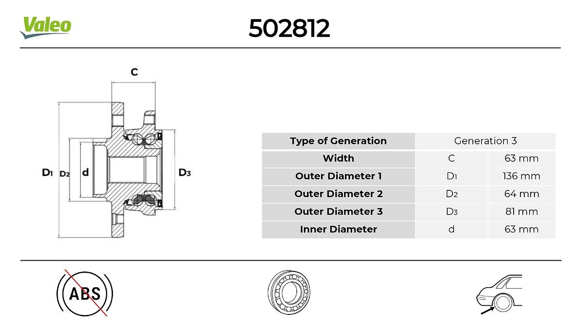 VALEO 502812 | Arka Teker Poryası Volvo S60 II S80 II V60 10 > V70 III Xc70 II 07 > 5 Bijon ABS'li 4X4