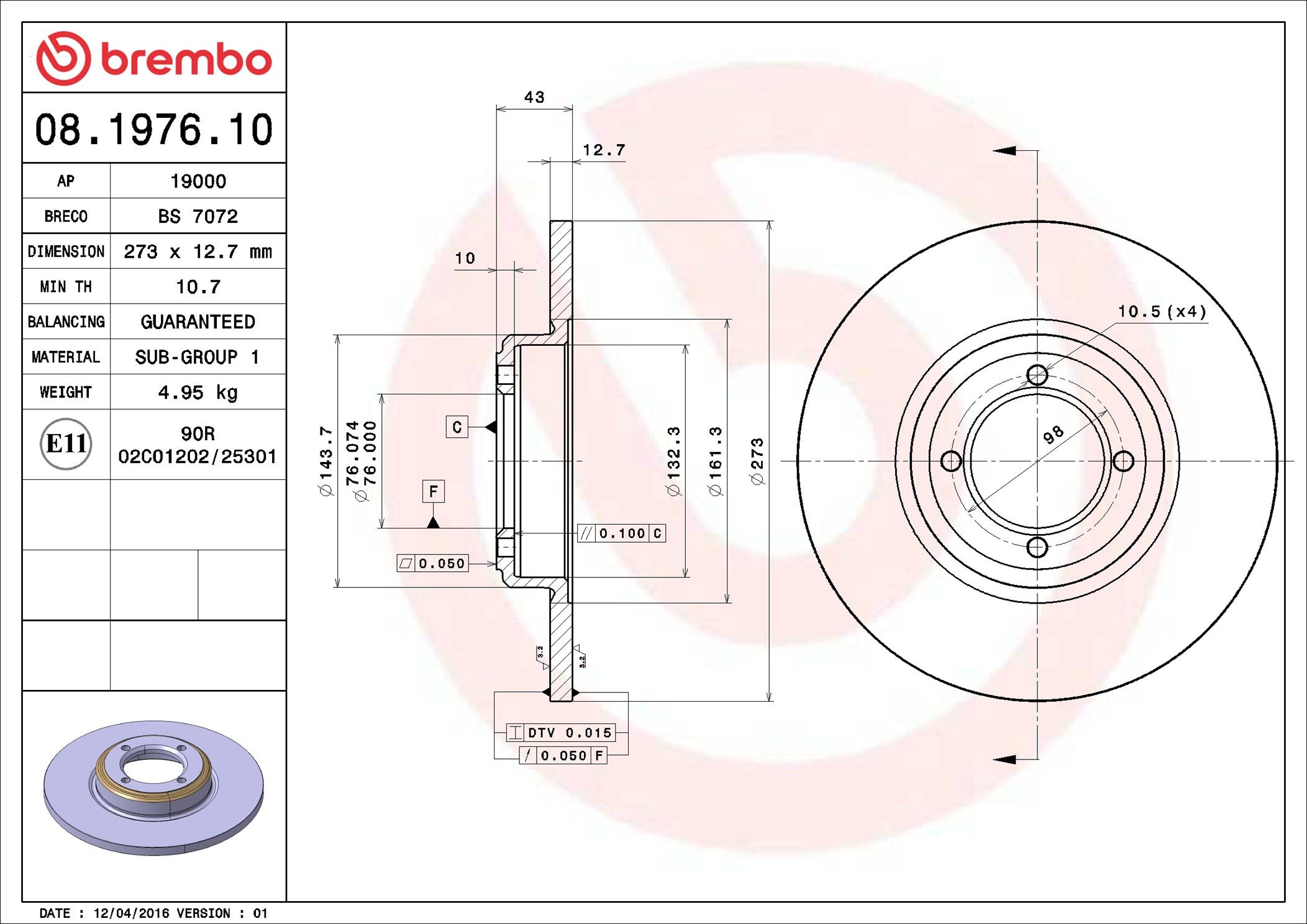 BREMBO 08.1976.10 | Fren Diski Ön Standard Peugeot | 2 Adet (Fren diski)