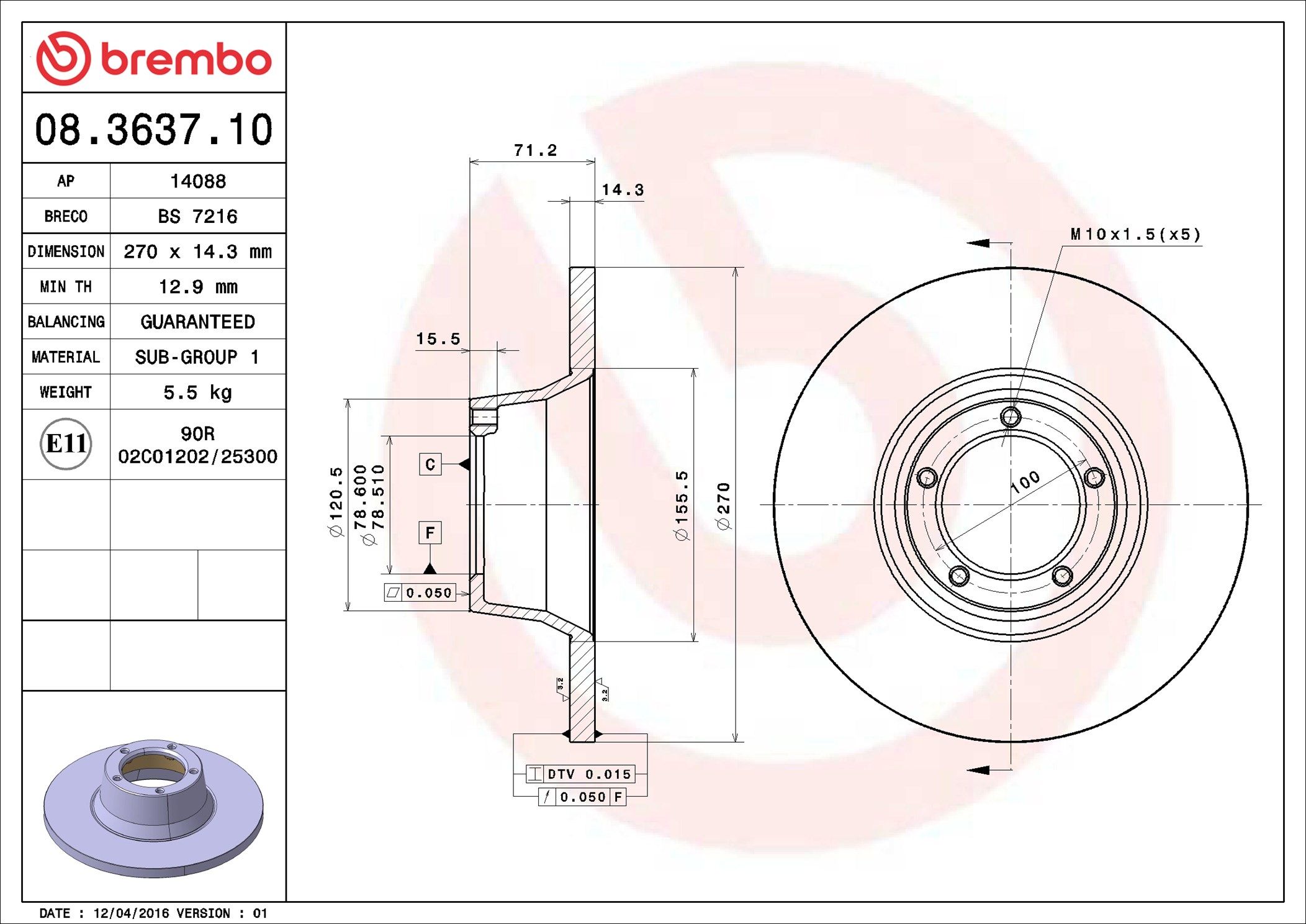 BREMBO 08.3637.10 | Fren Diski Ön Standard Ford | 2 Adet Takım