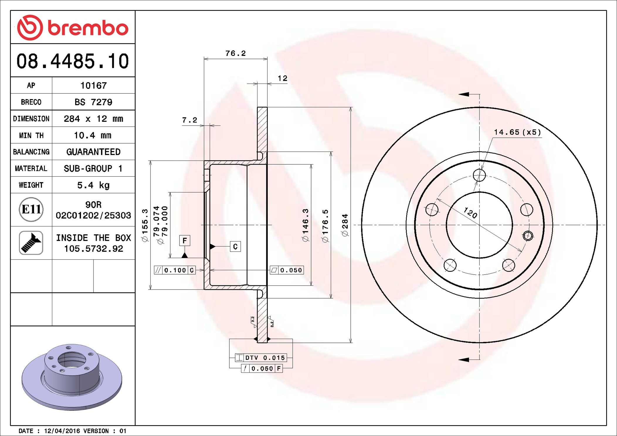 BREMBO 08.4485.10 | Fren Diski Ön Standard BMW | 2 Adet (Fren diski)