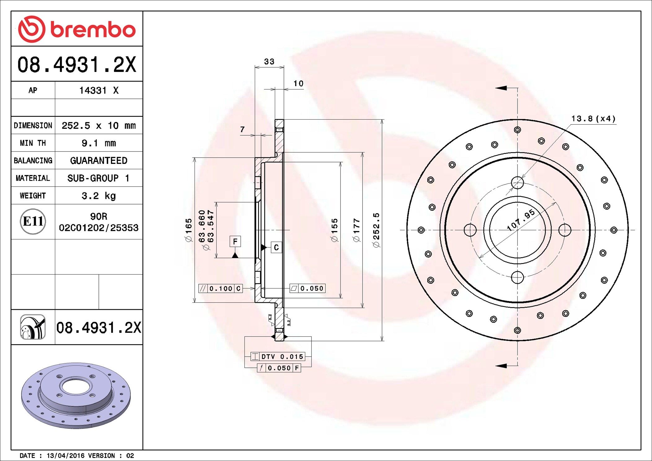 BREMBO 08.4931.2X | Fren Diski Arka Xtra Ford | 2 Adet