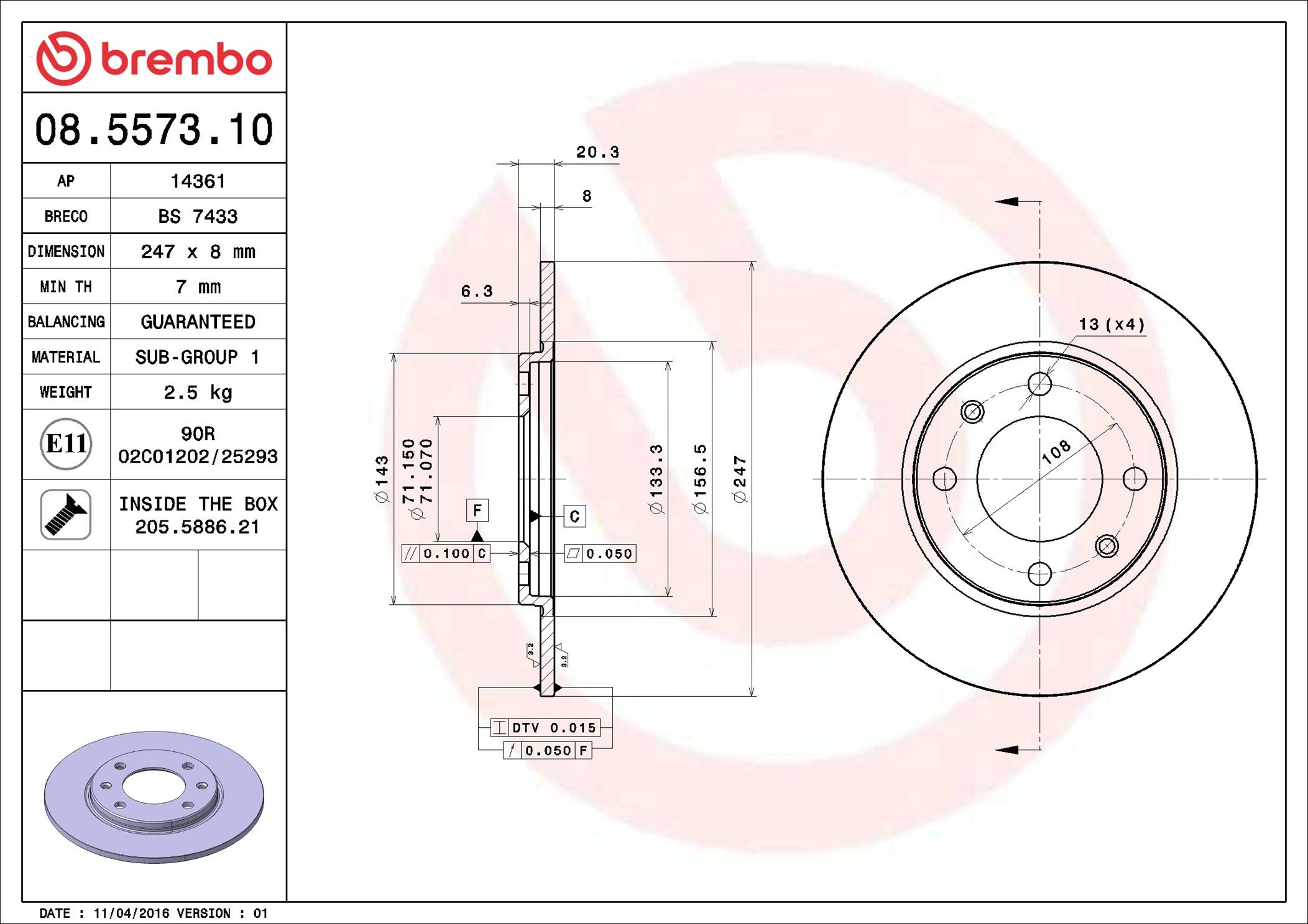BREMBO 08.5573.10 | Fren Diski Arka Standard Peugeot | 2 Adet