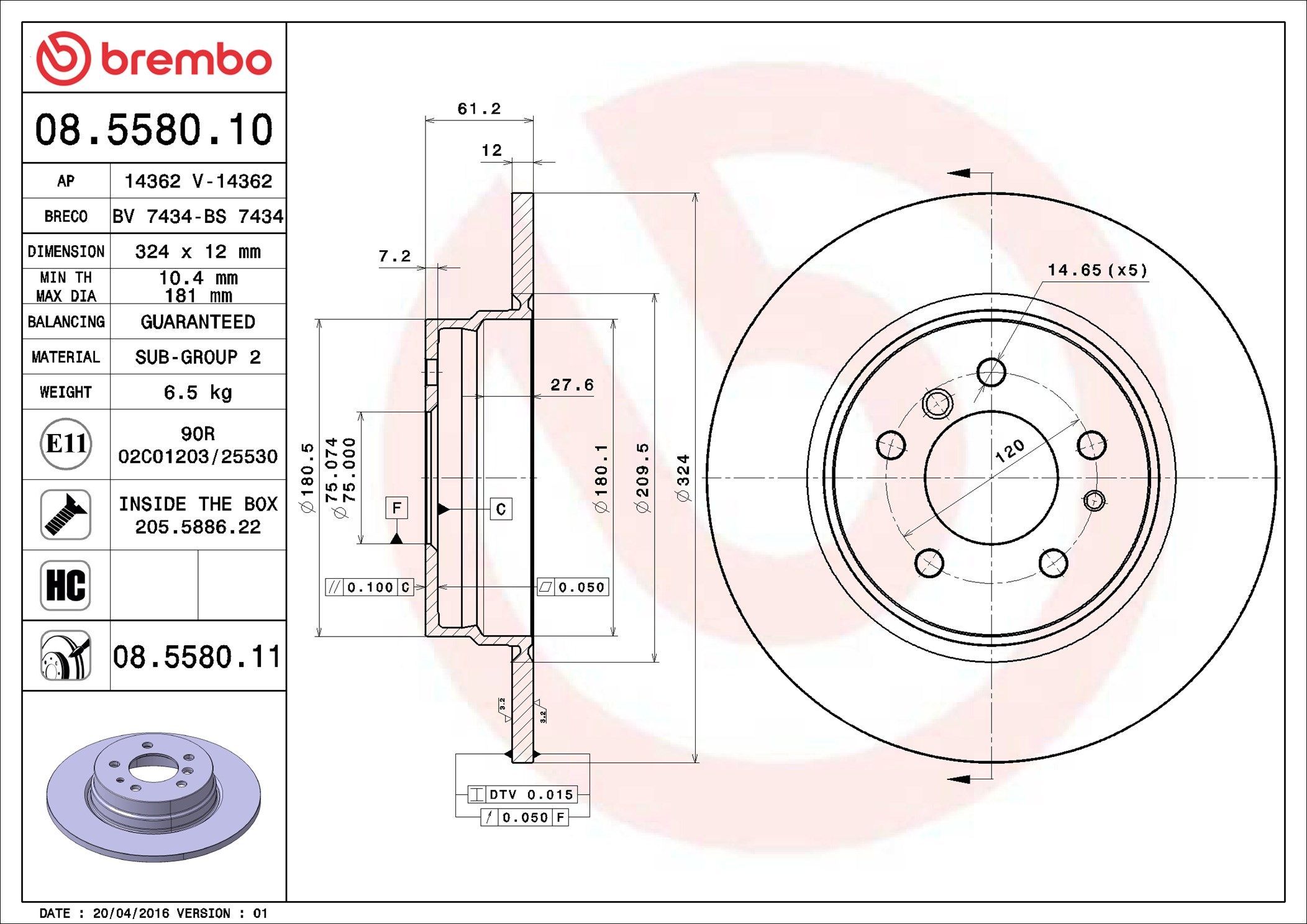 BREMBO 08.5580.11 | Fren Diski Arka UV Coated BMW | 2 Adet Takım