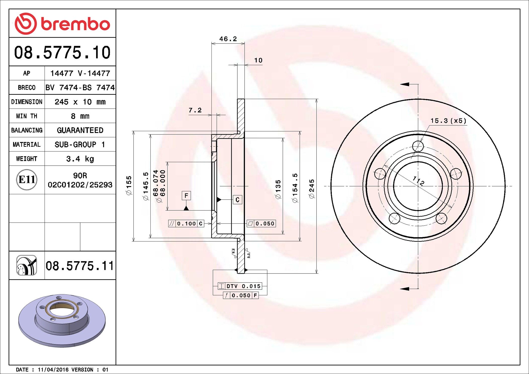 BREMBO 08.5775.11 | Fren Diski Arka UV Coated Audi | 2 Adet Takım