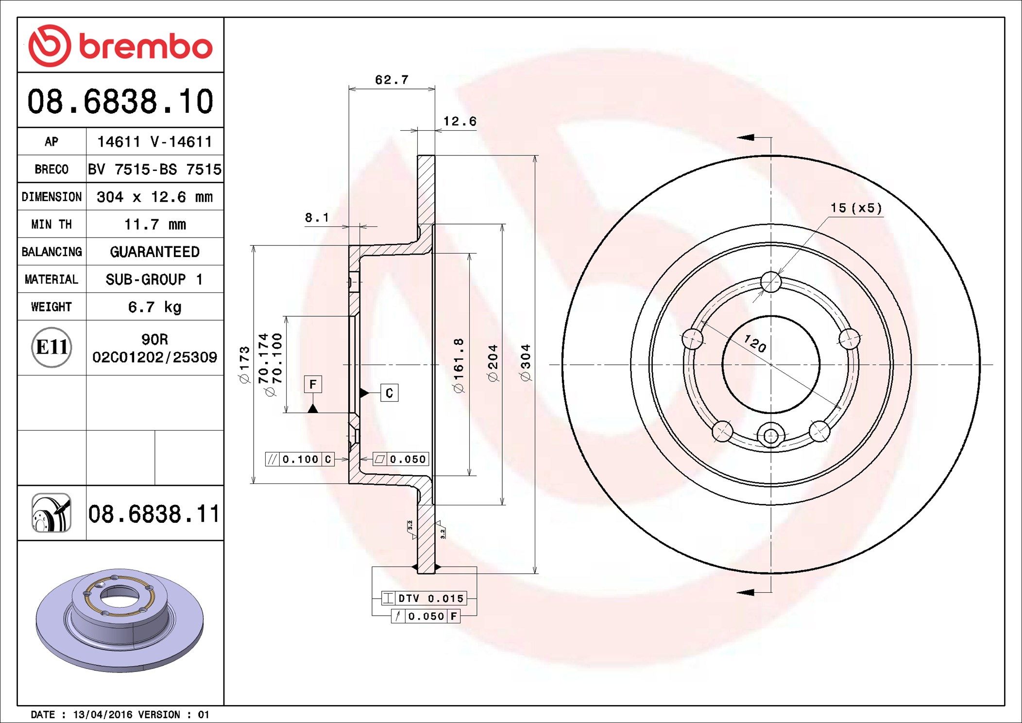 BREMBO 08.6838.11 | Fren Diski Arka UV Coated Land Rover | 2 Adet (Fren diski)