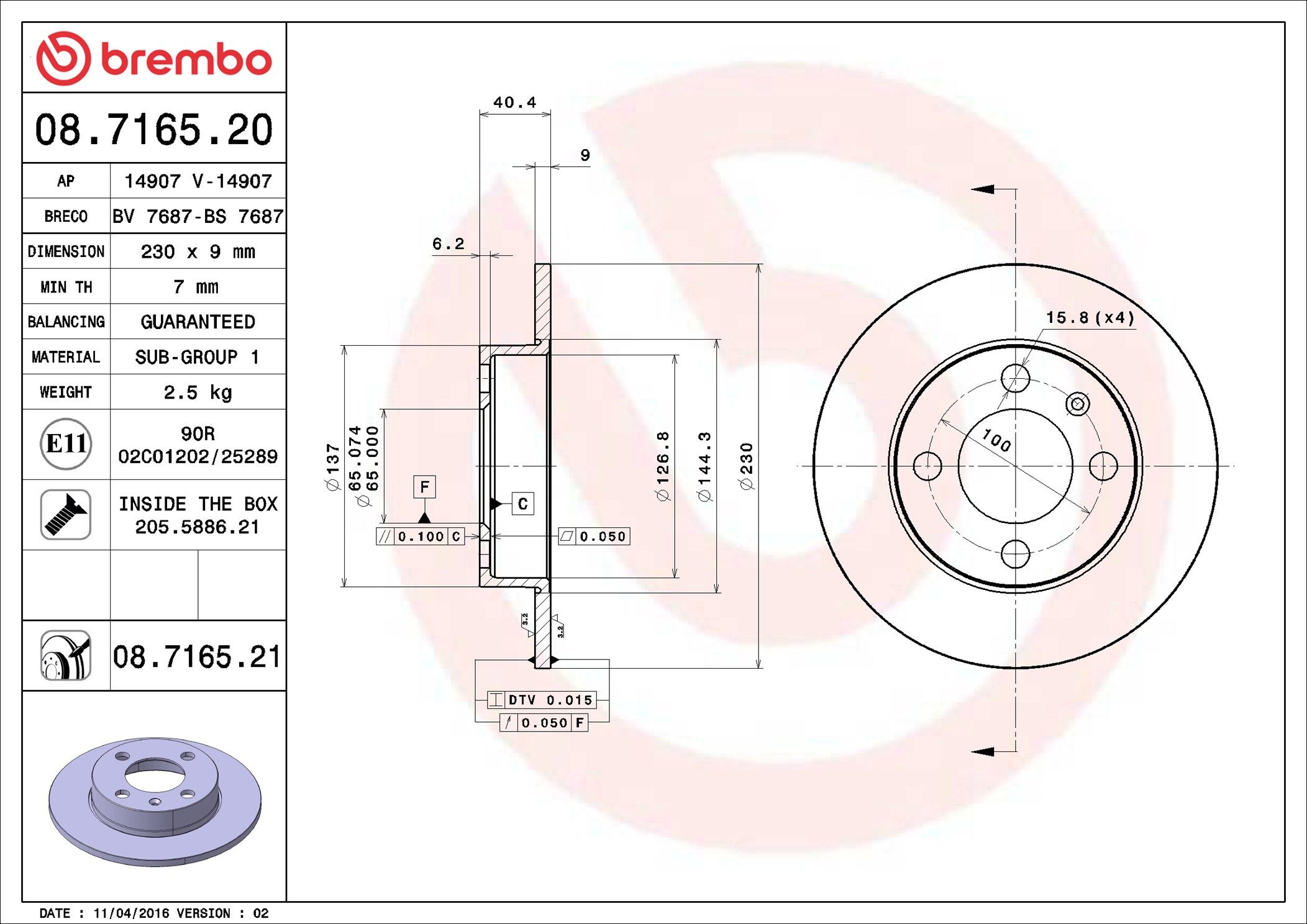BREMBO 08.7165.20 | Fren Diski Arka Standard VW | 2 Adet (Fren diski)