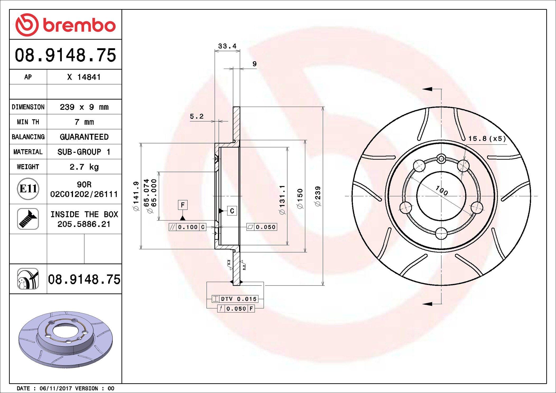 BREMBO 08.9148.75 | Fren Diski Arka Max Audi | 2 Adet (Fren diski)
