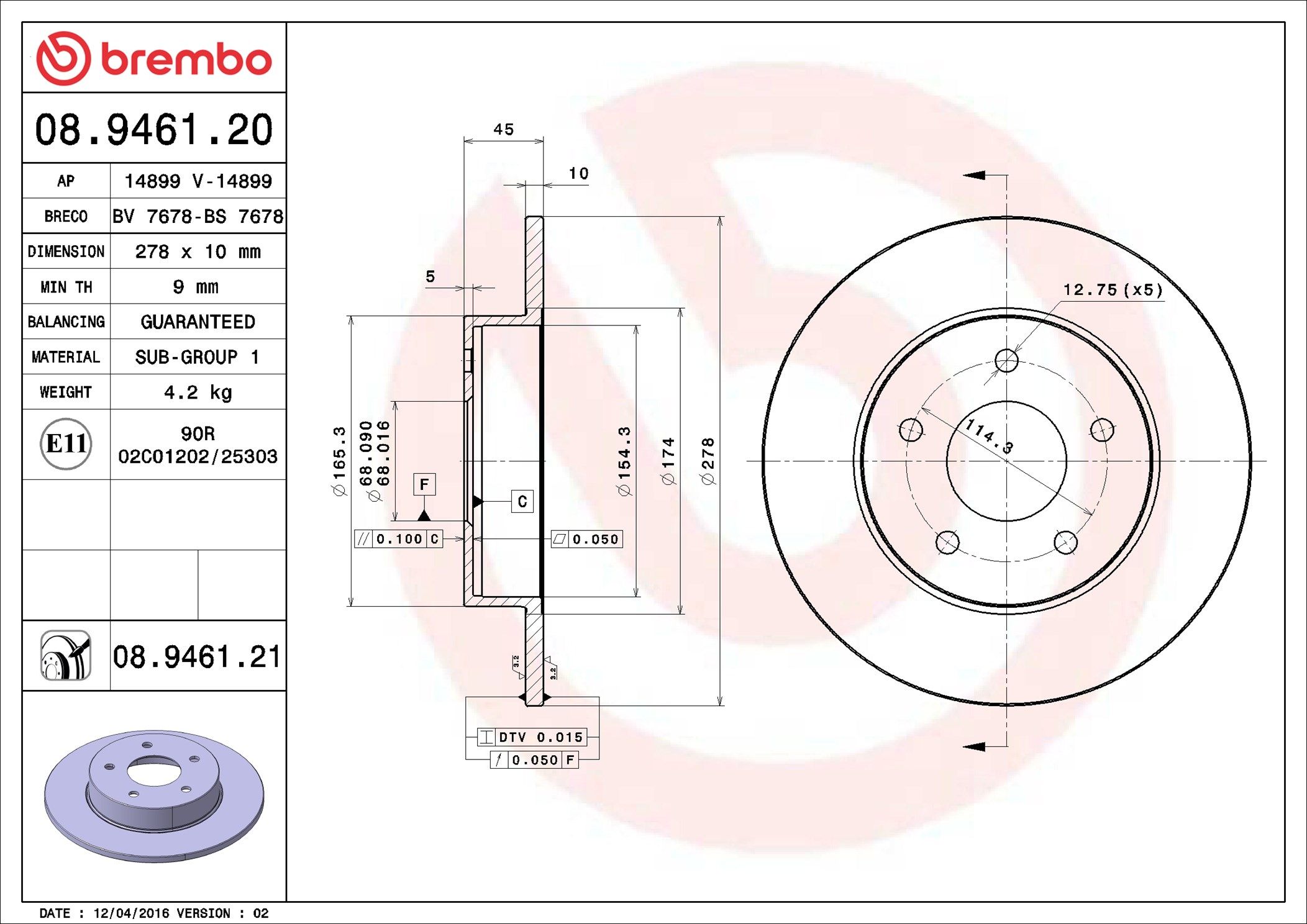 BREMBO 08.9461.21 | Fren Diski Arka UV Coated Nissan | 2 Adet (Fren diski)