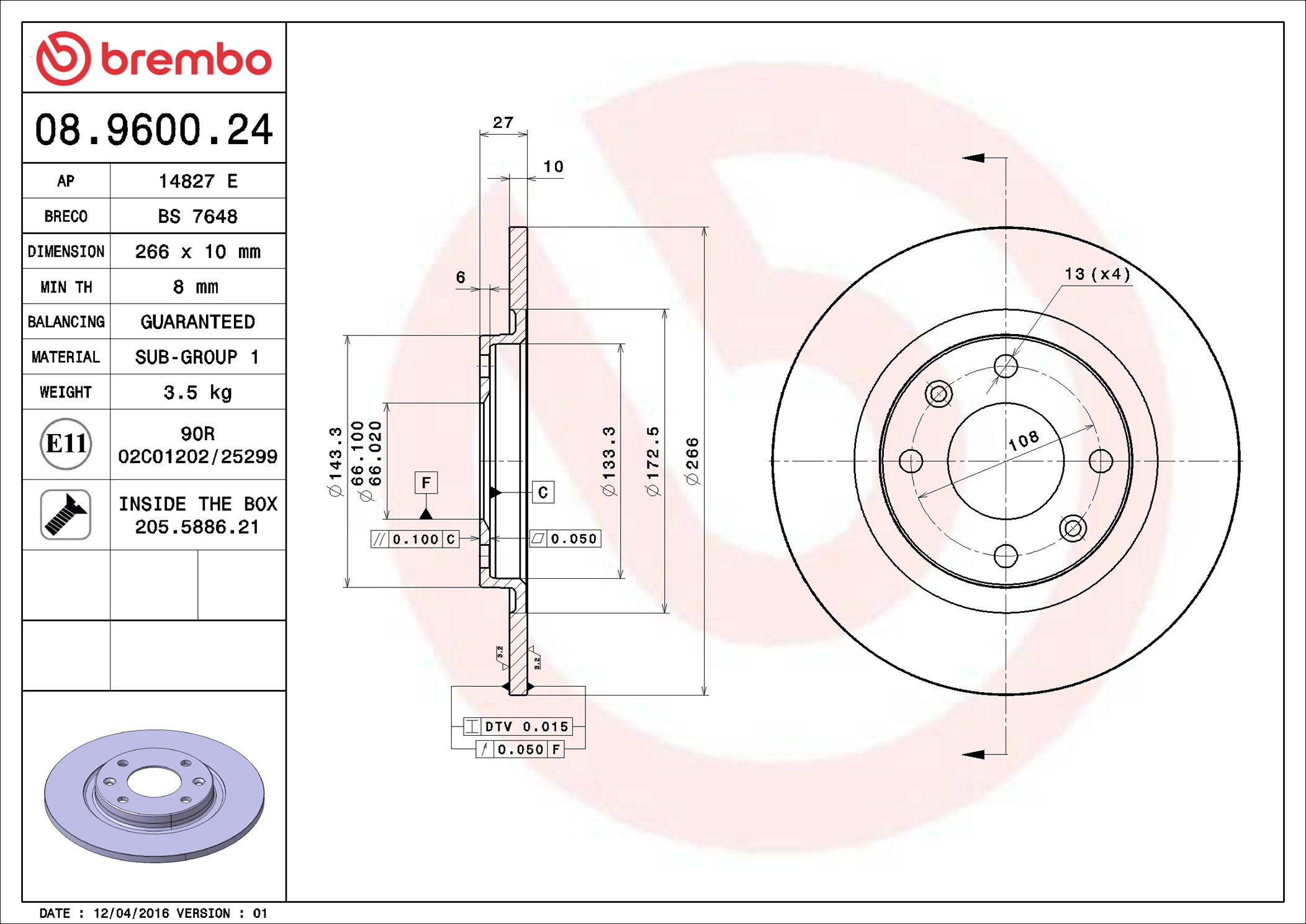 BREMBO 08.9600.24 | Fren Diski Ön Standard Citroen | 2 Adet (Fren diski)