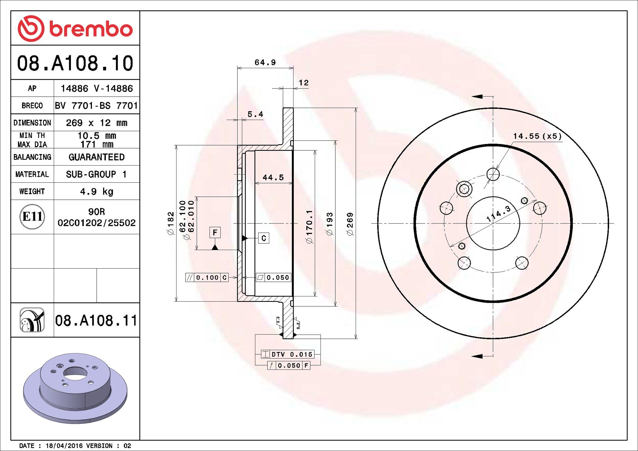 BREMBO 08.A108.10 | Fren Diski Arka Standard Toyota | 2 Adet
