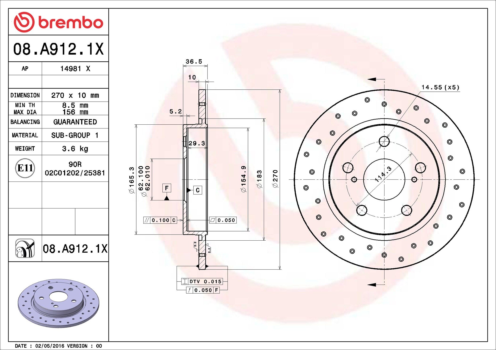 BREMBO 08.A912.1X | Fren Diski Arka Xtra Toyota | 2 Adet (Fren diski)