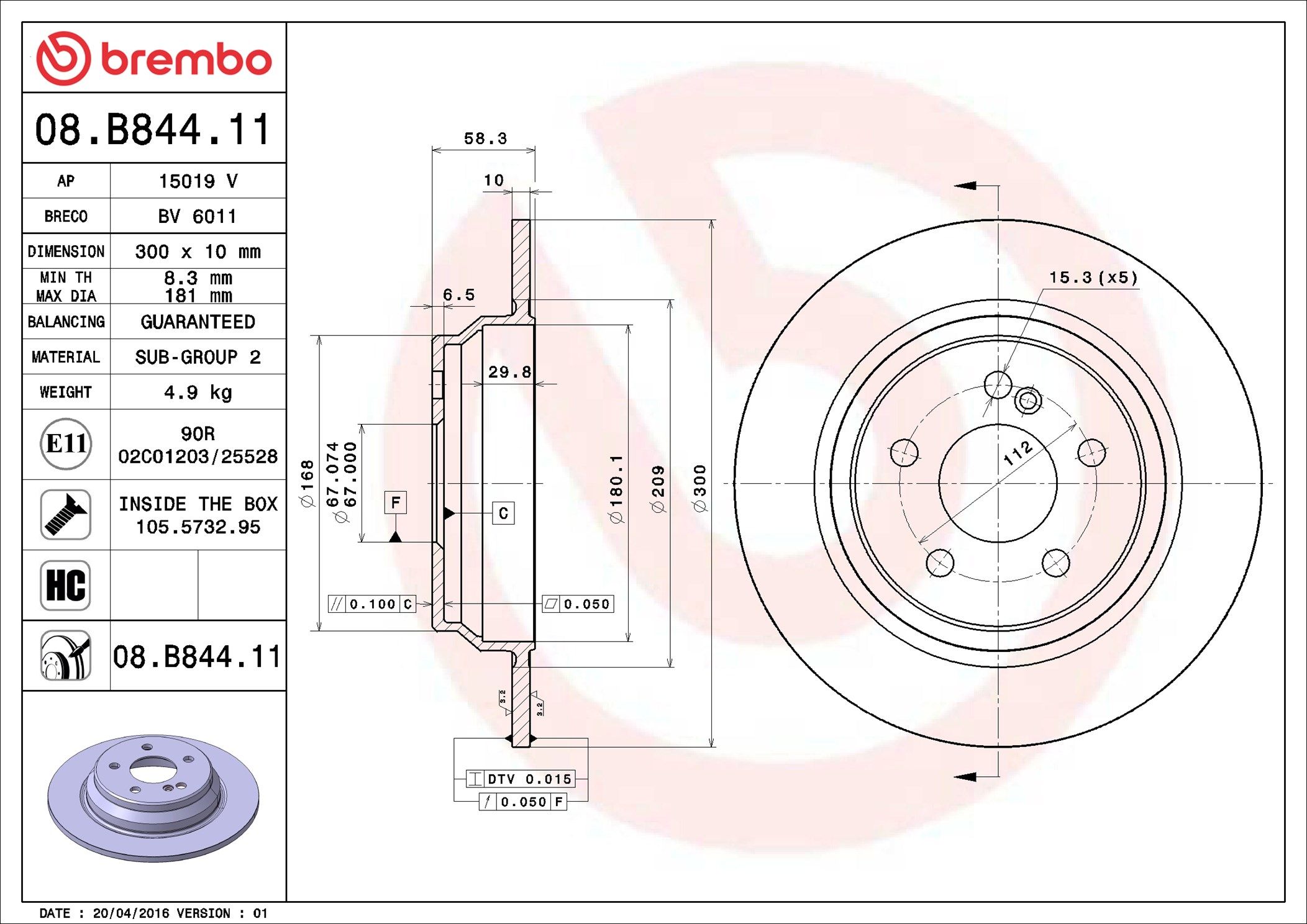BREMBO 08.B844.11 | Fren Diski Arka UV Coated Mercedes-Benz | 2 Adet Takım