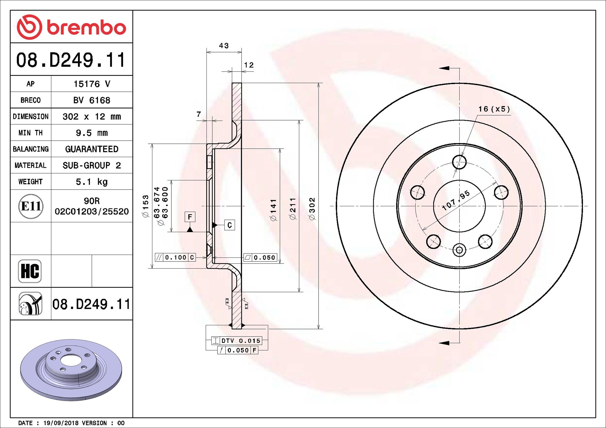 BREMBO 08.D249.11 | Fren Diski Arka UV Coated Volvo | 2 Adet