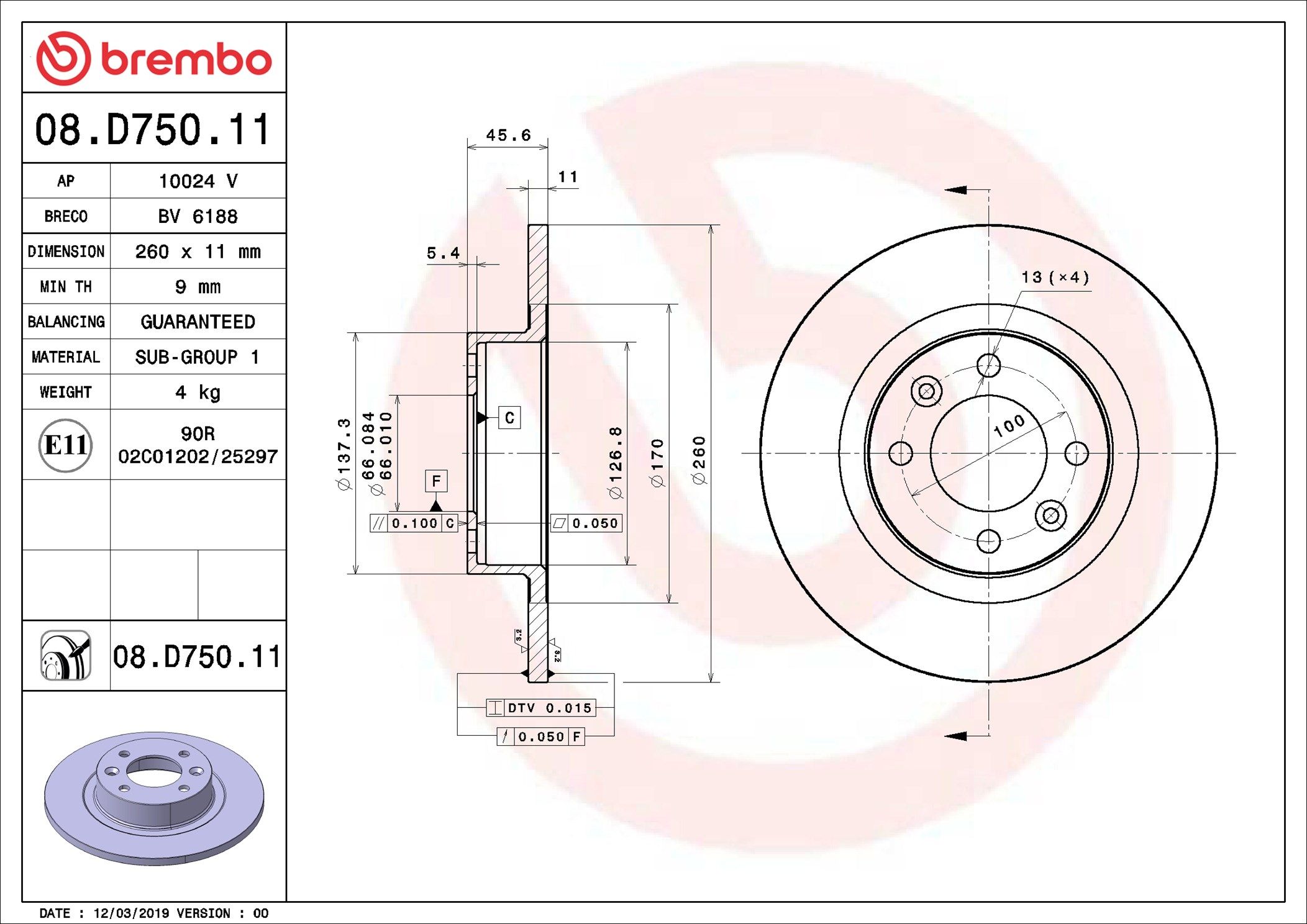 BREMBO 08.D750.11 | Fren Diski Arka UV Coated Lada | 2 Adet