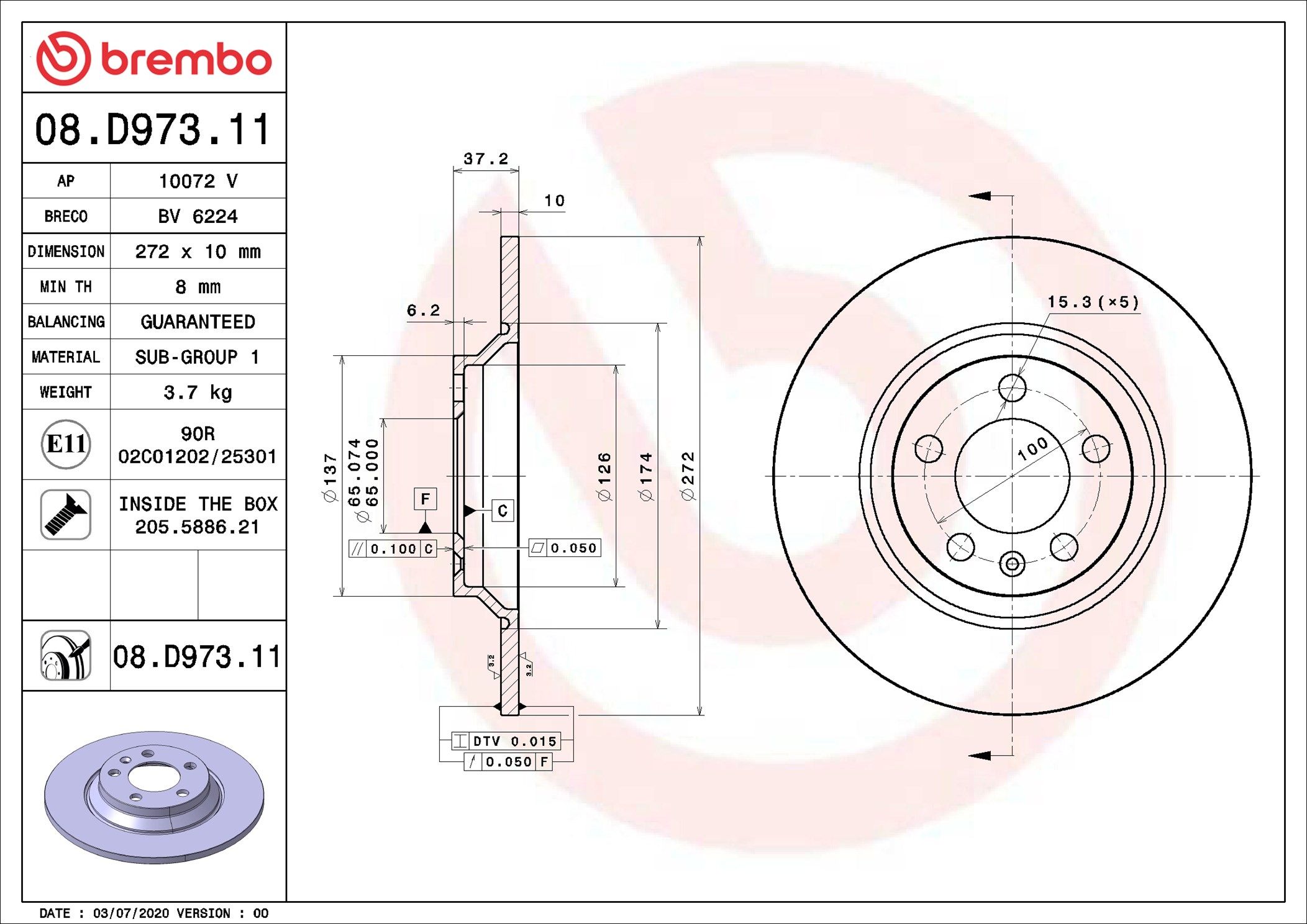 BREMBO 08.D973.11 | Fren Diski Arka UV Coated Audi | 2 Adet (Fren diski)