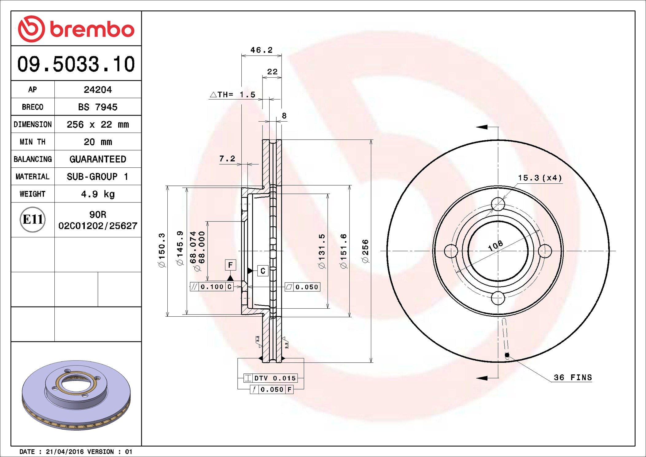 BREMBO 09.5033.10 | Fren Diski Ön Standard Audi | 2 Adet