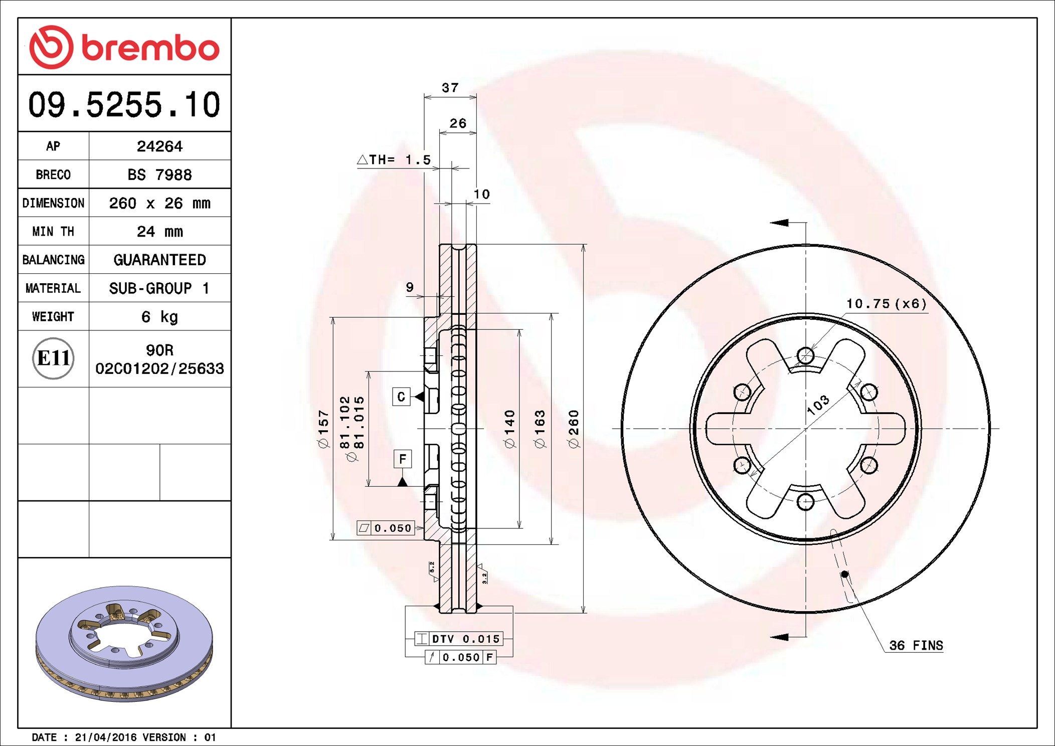 BREMBO 09.5255.10 | Fren Diski Ön Standard Nissan | 2 Adet