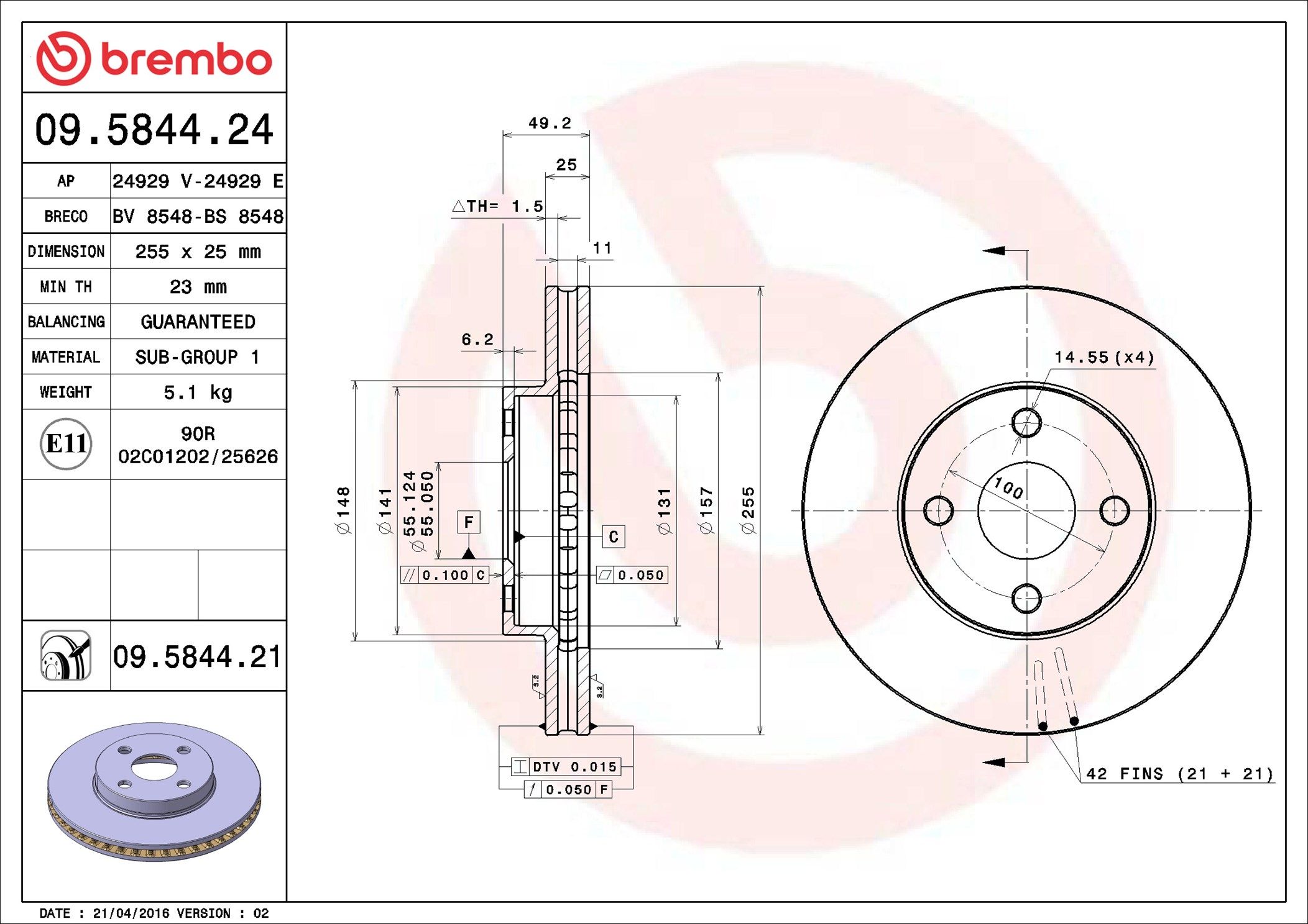 BREMBO 09.5844.21 | Fren Diski Ön UV Coated Toyota | 2 Adet (Fren diski)