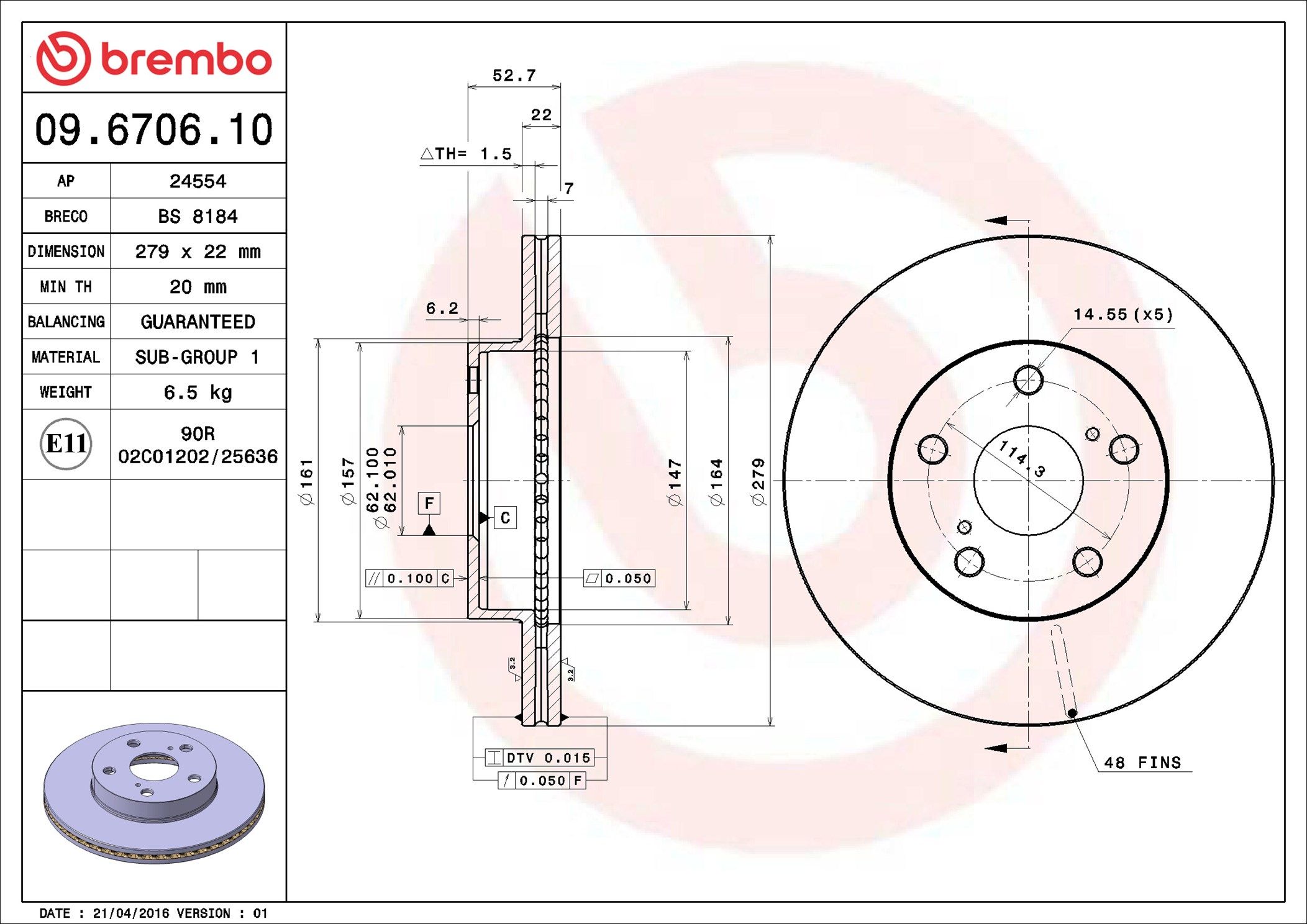 BREMBO 09.6706.10 | Fren Diski Ön Toyota | 2 Adet