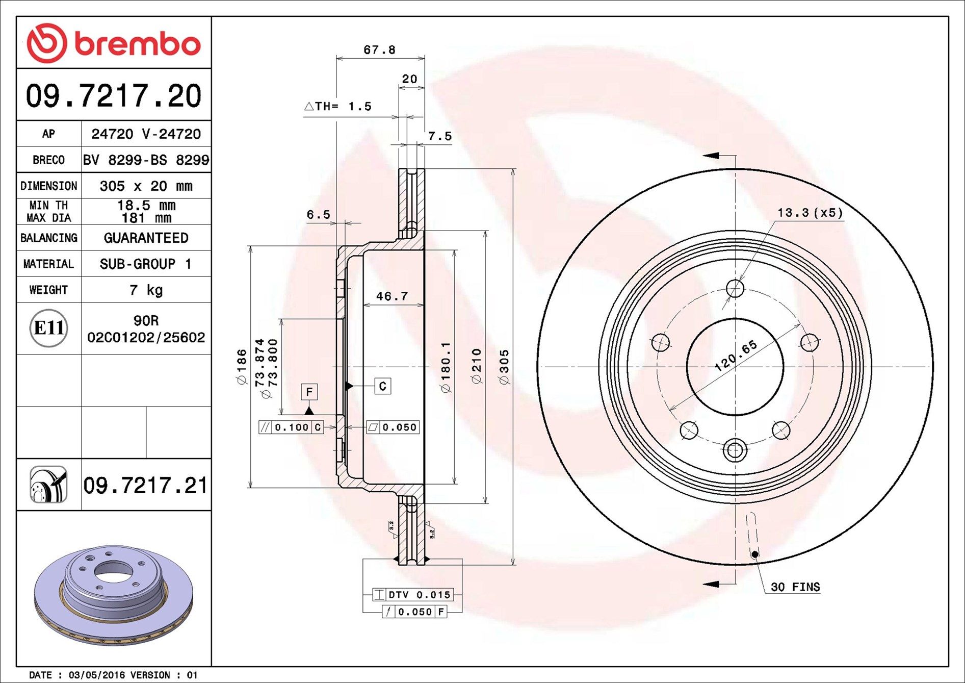 BREMBO 09.7217.21 | Fren Diski Arka UV Coated Jaguar | 2 Adet Takım