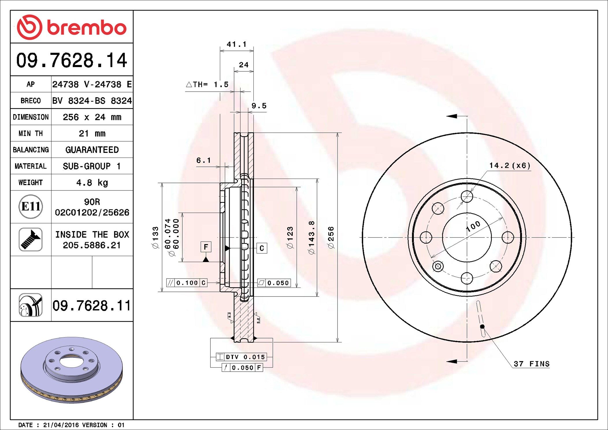 BREMBO 09.7628.14 | Fren Diski Ön Standard Opel | 2 Adet