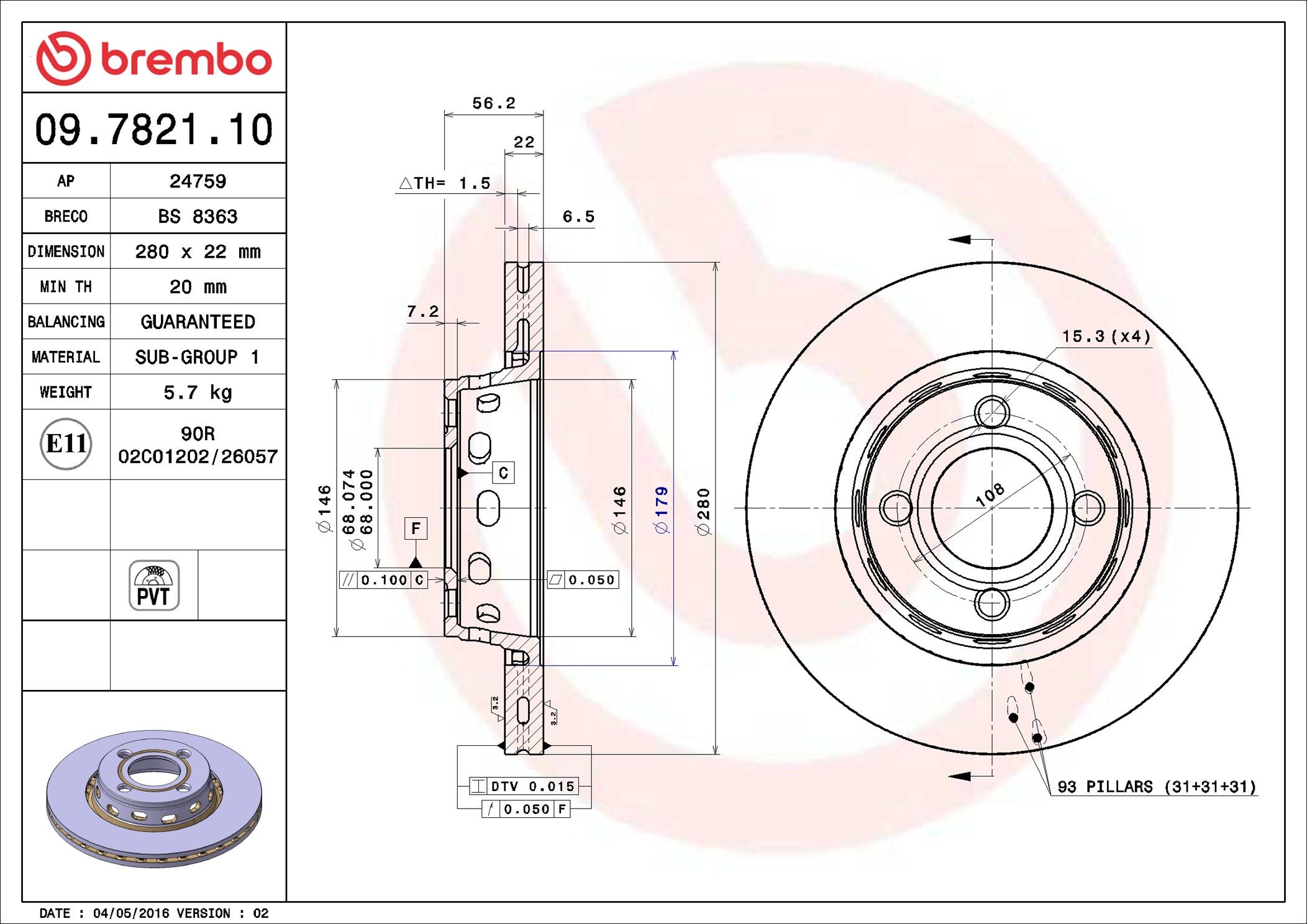 BREMBO 09.7821.10 | Fren Diski Ön Standard Audi | 2 Adet