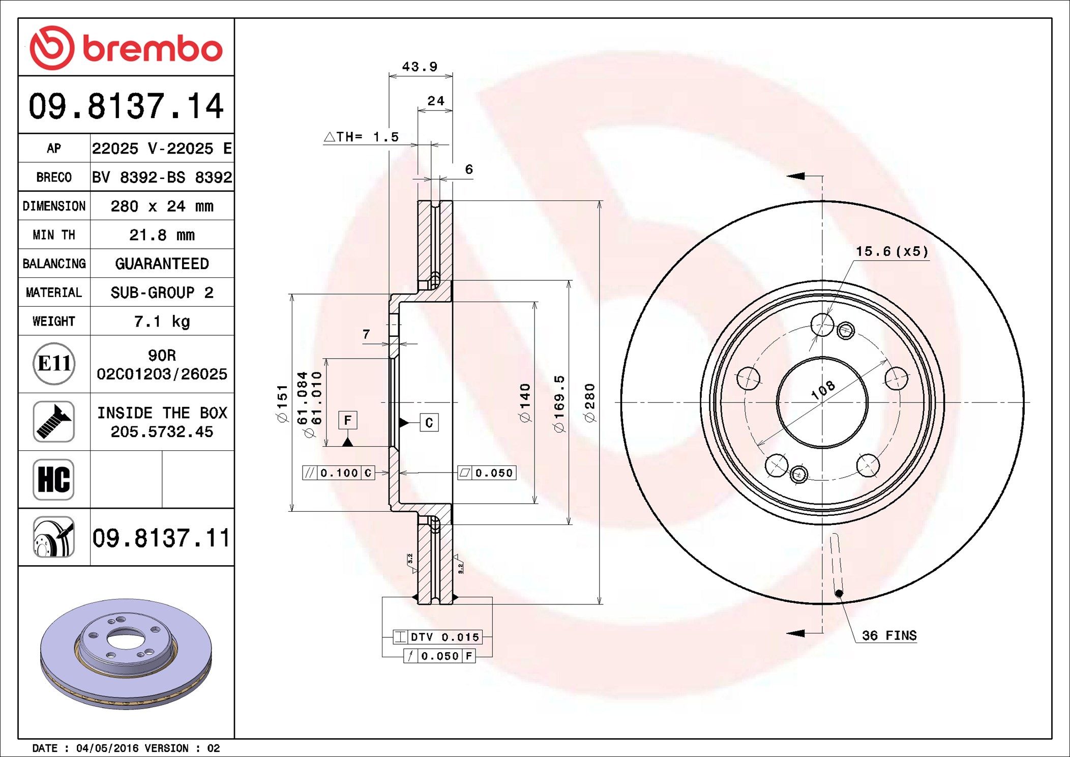 BREMBO 09.8137.11 | Fren Diski Ön UV Coated Renault | 2 Adet (Fren diski)