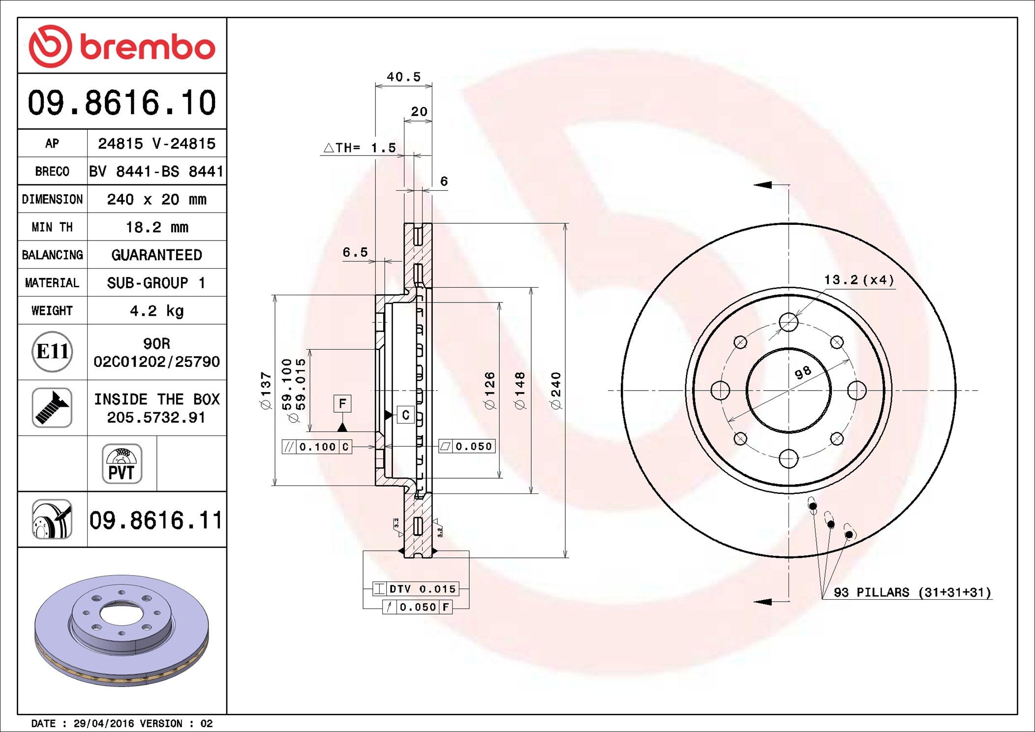 BREMBO 09.8616.10 | Fren Diski Ön Standard Ford | 2 Adet (Fren diski)