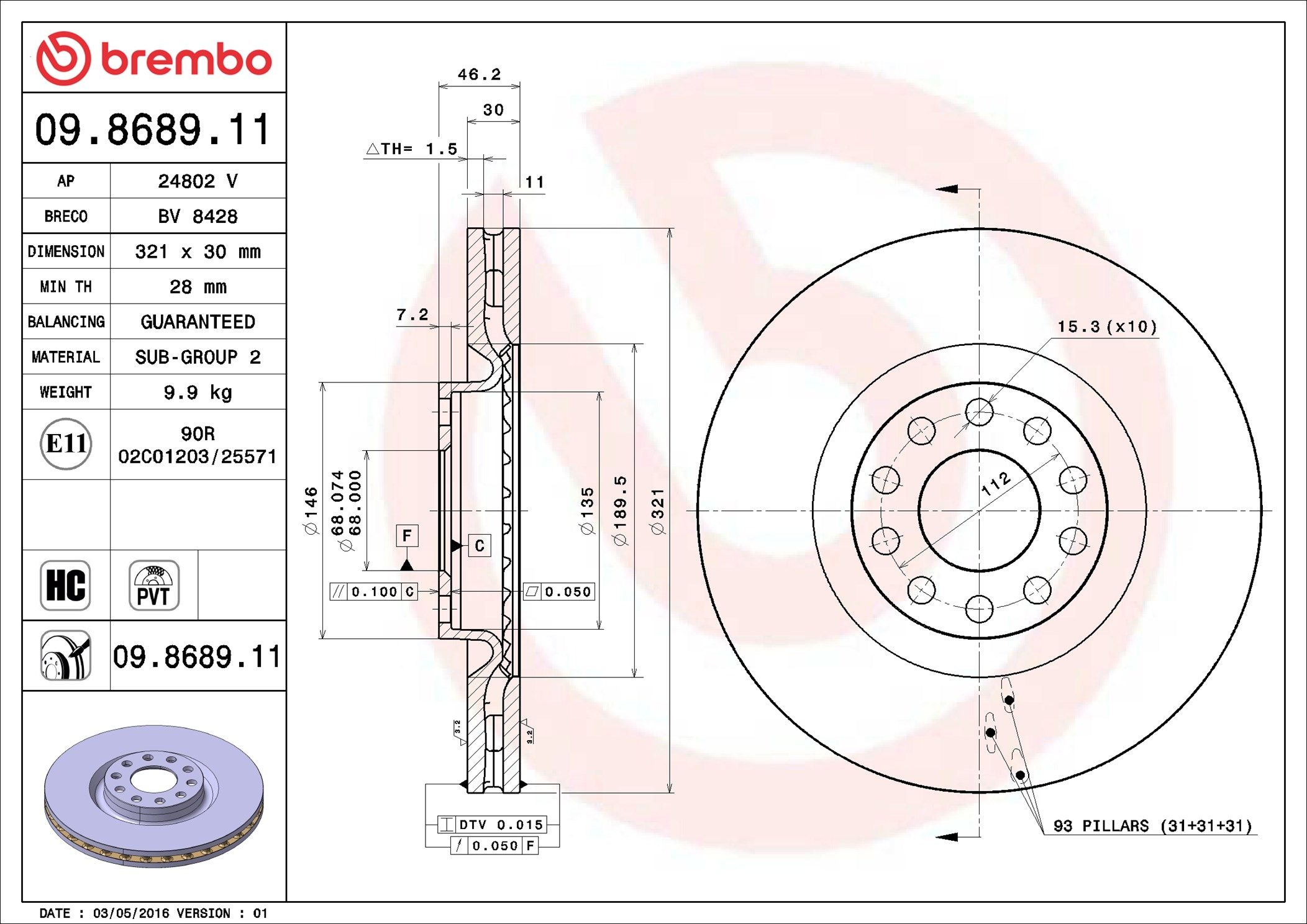 BREMBO 09.8689.11 | Fren Diski Ön UV Coated Audi | 2 Adet (Fren diski)