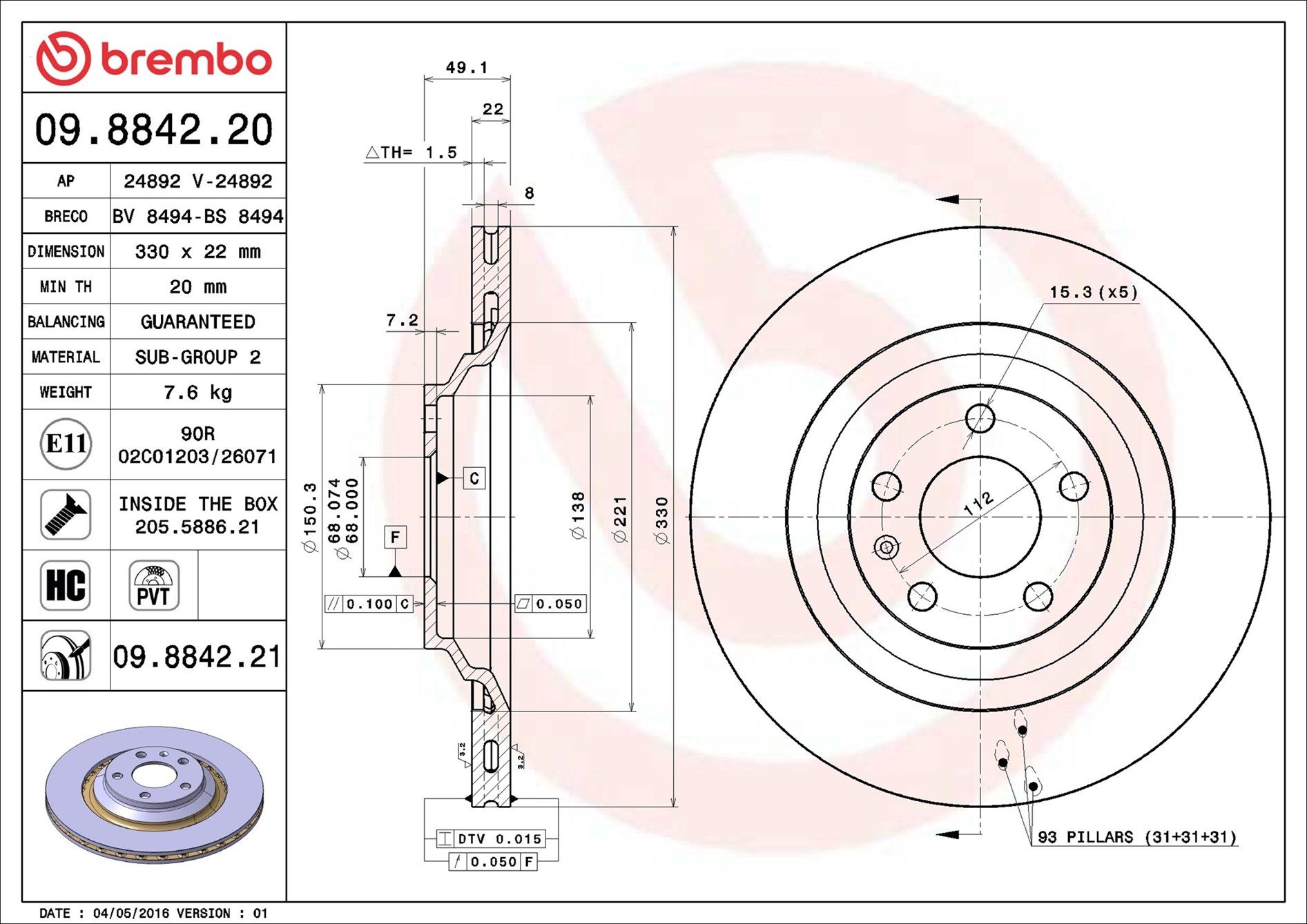 BREMBO 09.8842.21 | Fren Diski Arka Audi A6 (4F2, C6) , A6 Avant (4F5, C6) , A6l Saloon (4F2, C6)