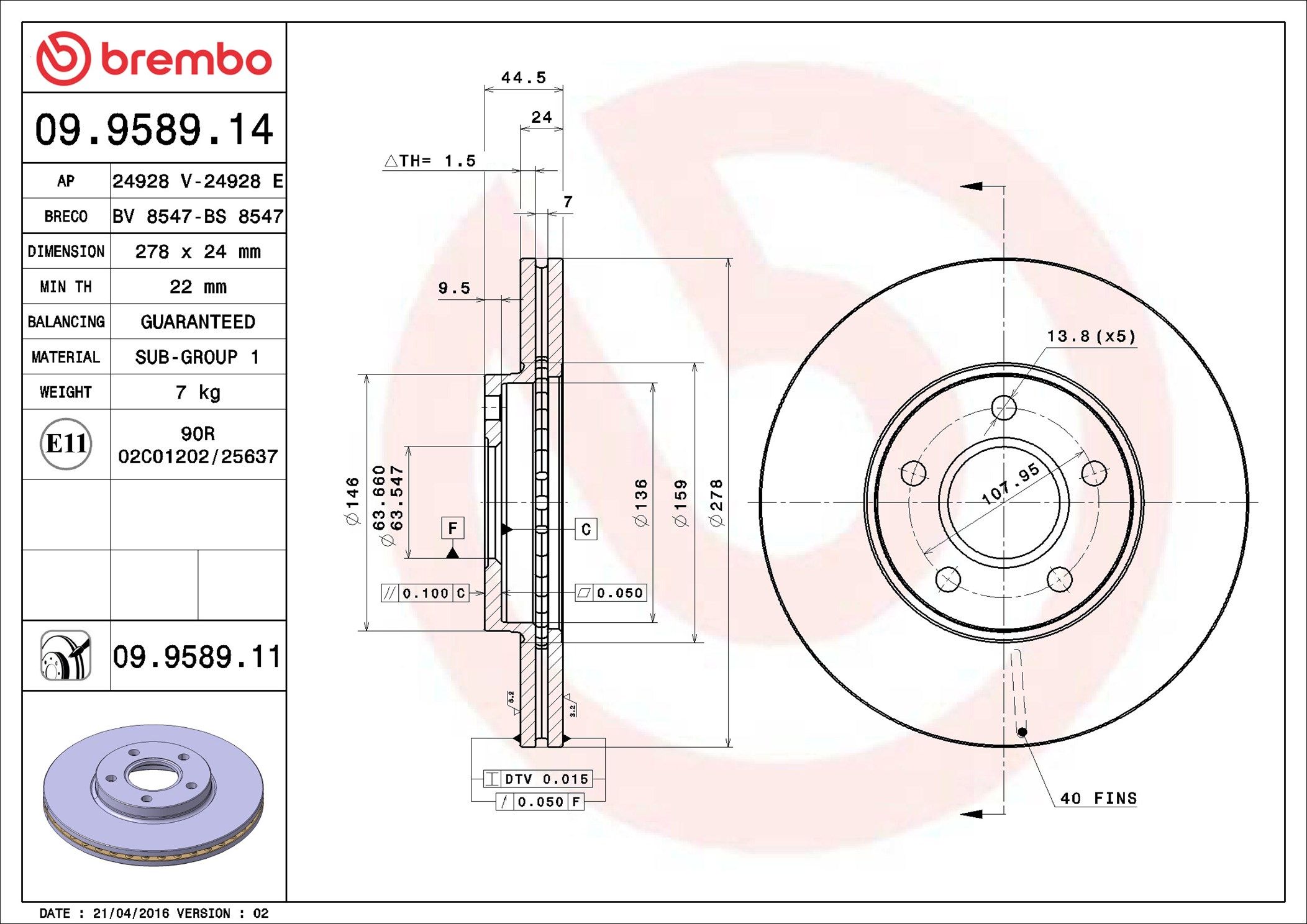 BREMBO 09.9589.11 | Fren Diski Ön UV Coated Ford | 2 Adet (Fren diski)