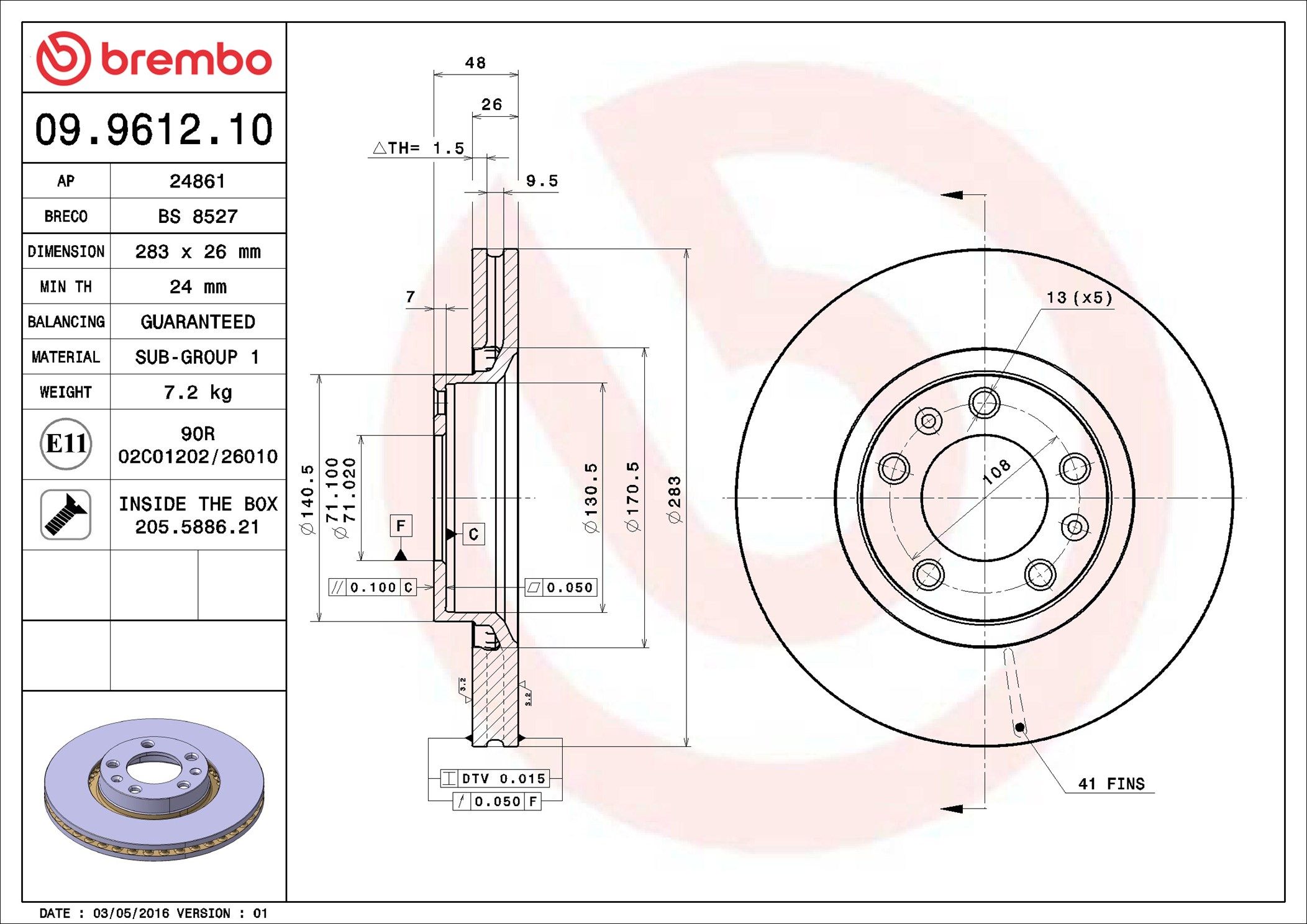 BREMBO 09.9612.10 | Fren Diski Ön Standard Peugeot | 2 Adet Takım