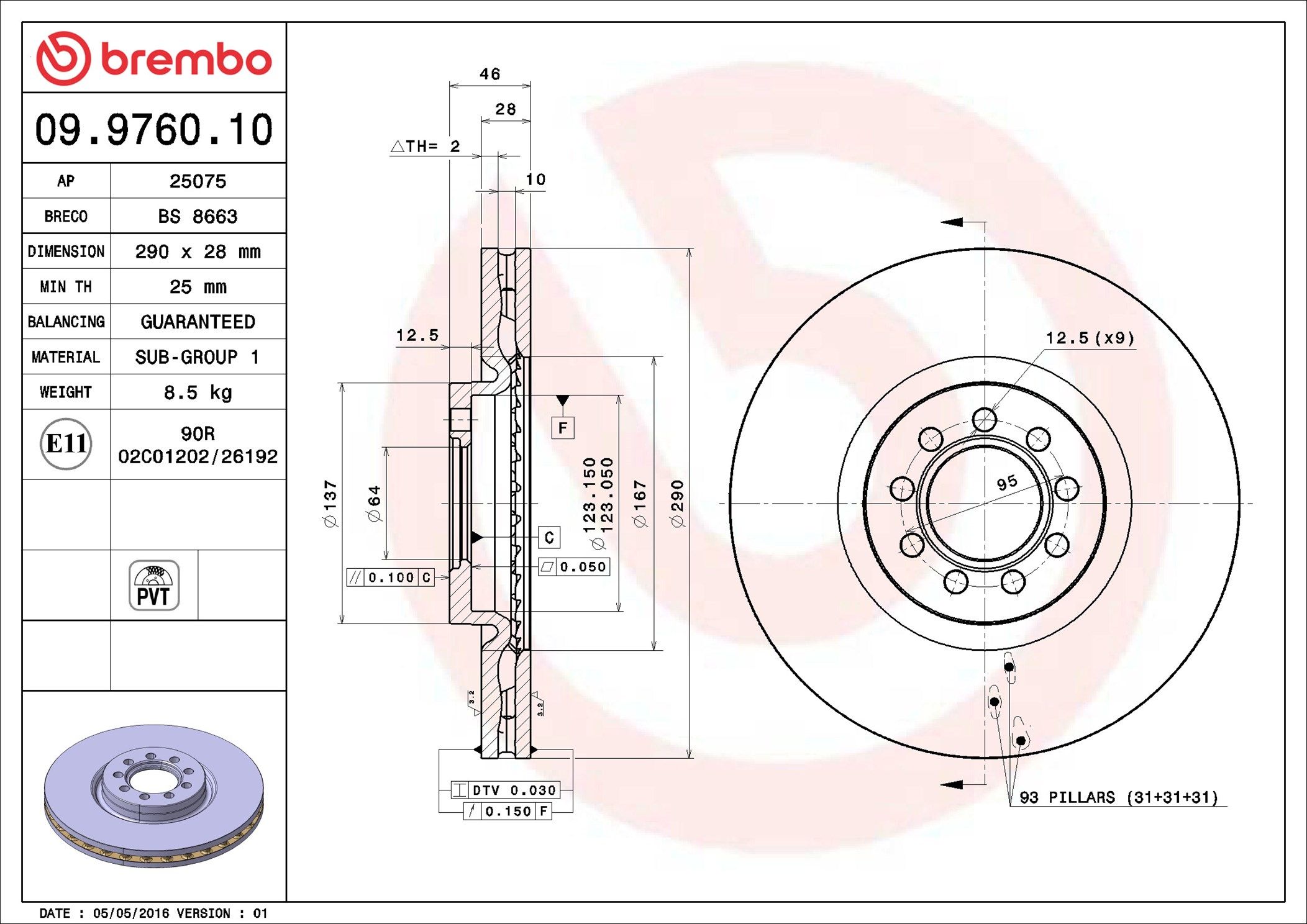 BREMBO 09.9760.10 | Fren Disk Ön Hava Kanallı 290-9-(Iveco: Daily IV 2006 > 2011 Iveco: Daily V 2011 > 2014 | 2 Adet (Fren diski)