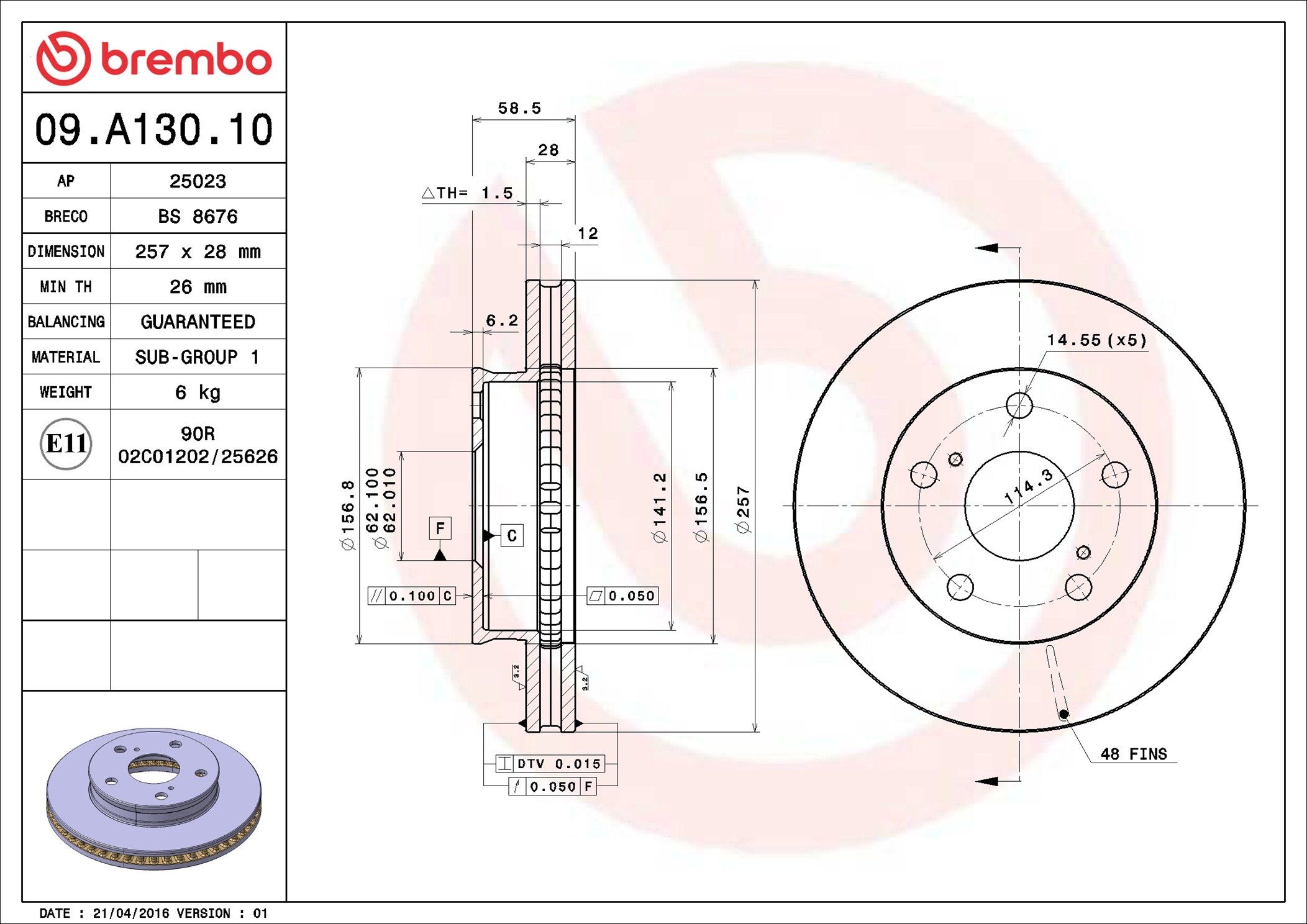 BREMBO 09.A130.10 | Fren Diski Ön Standard Toyota | 2 Adet