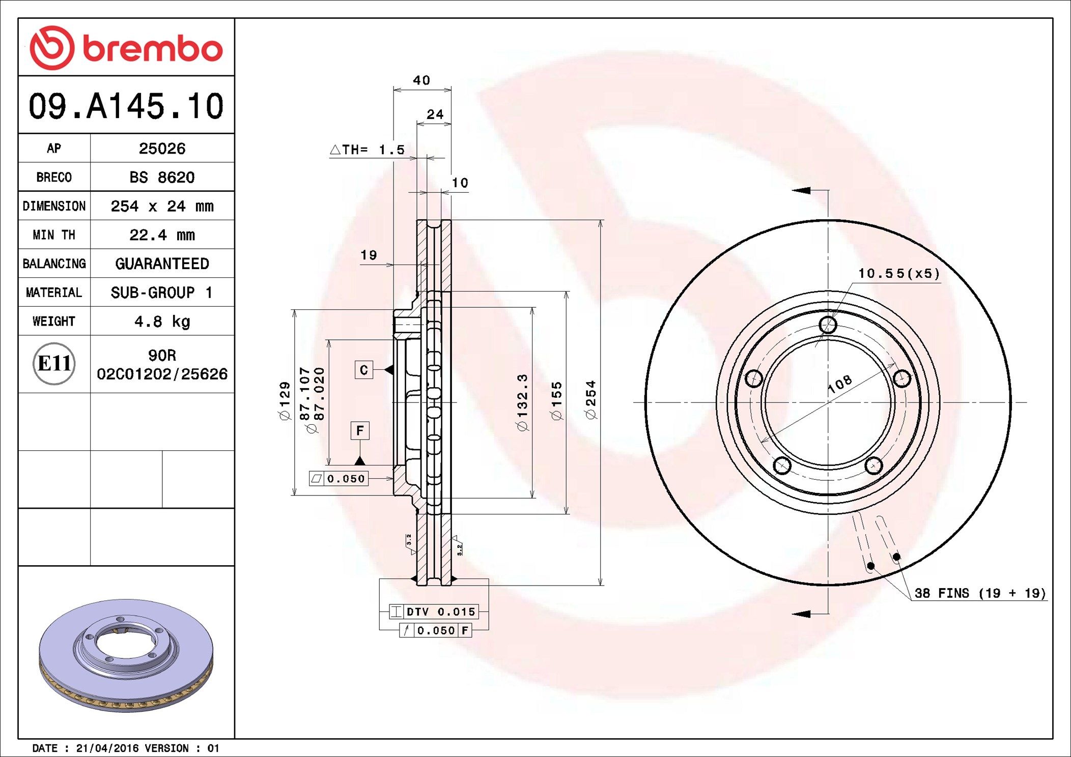 BREMBO 09.A145.10 | Fren Disk Ön Havalı Hyundai Starex 2.5 Tcı 97-02254×5 | 2 Adet Takım