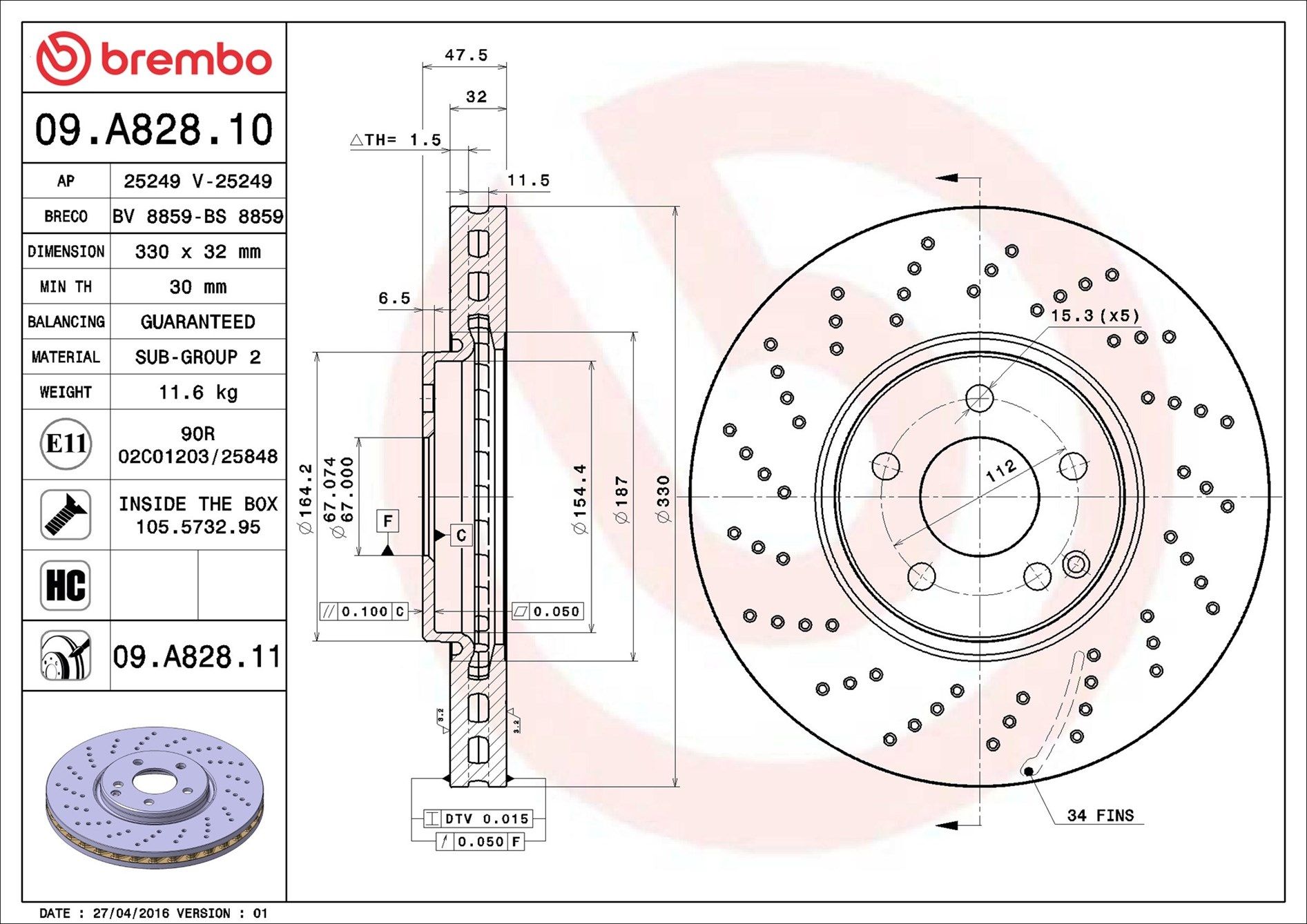 BREMBO 09.A828.11 | Fren Diski Ön UV Coated Mercedes-Benz | 2 Adet