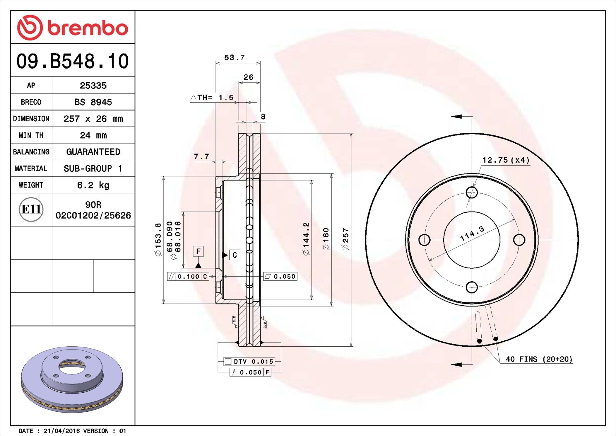 BREMBO 09.B548.10 | Fren Diski Ön Havalı 257 mm Mitsubishi Lancer VII 2.0 I 07-Lancer VIII 1.8 1.8 Dı-D 10 -