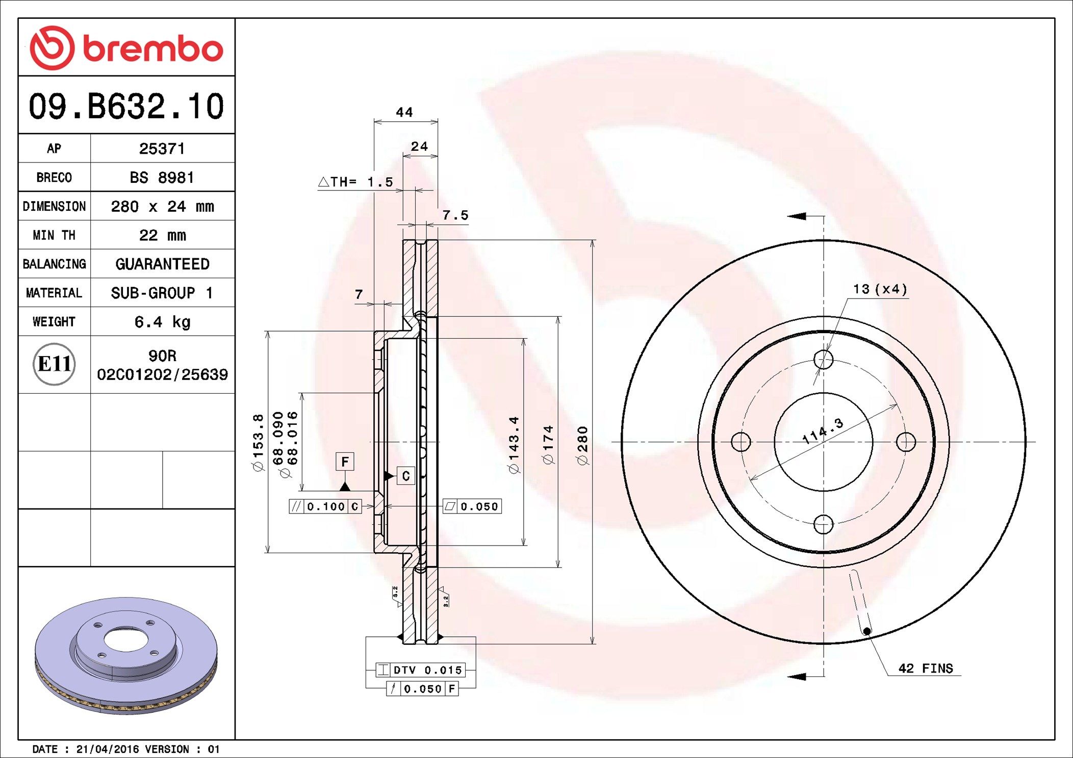 BREMBO 09.B632.10 | Fren Diski X2 Nissan Cube 03.10 / F | 2 Adet Takım