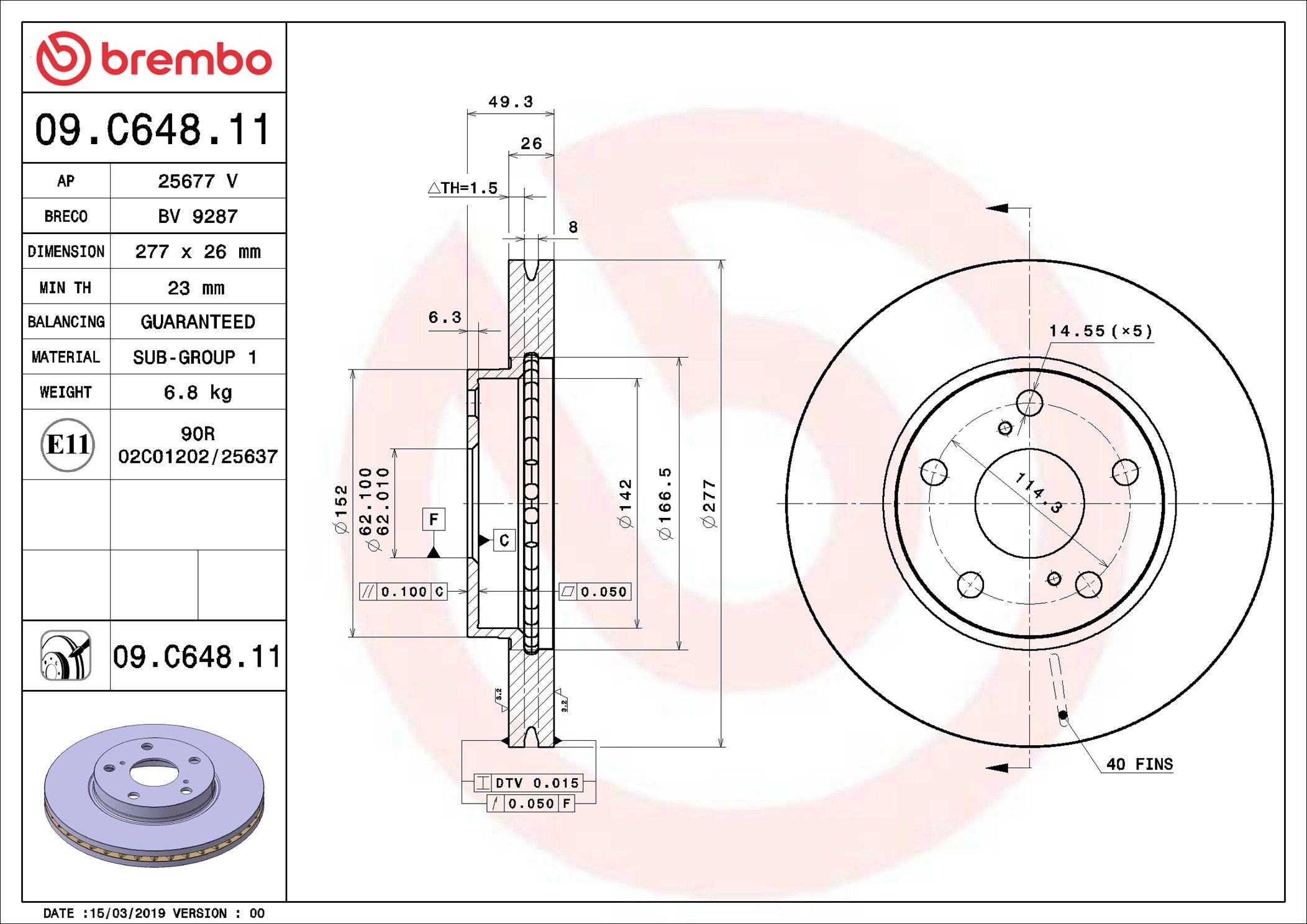 BREMBO 09.C648.11 | Fren Diski Ön UV Coated Toyota | 2 Adet
