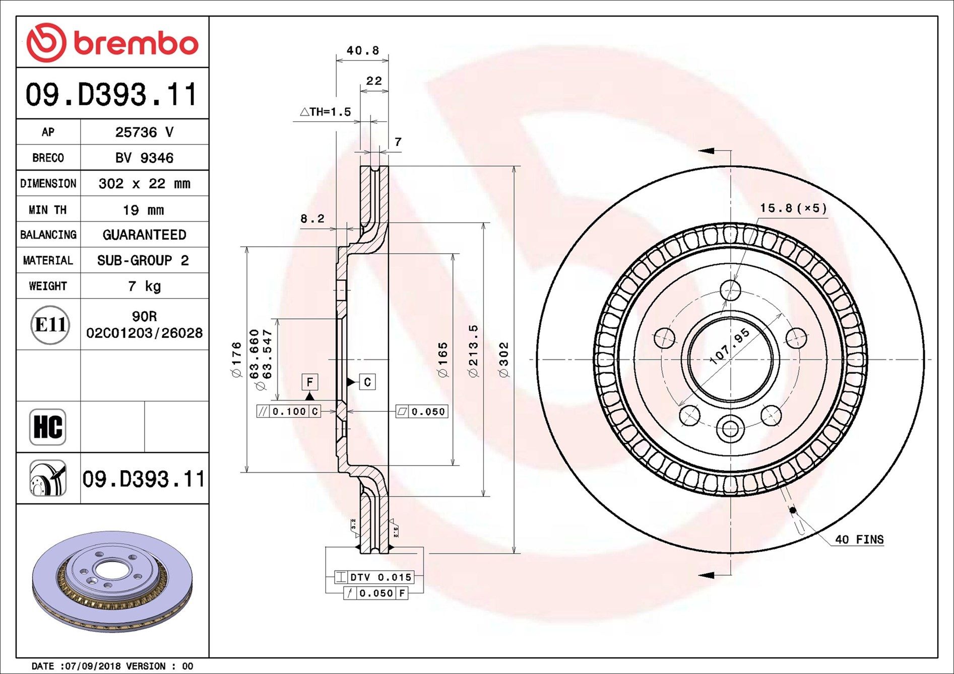 BREMBO 09.D393.11 | Fren Diski Arka UV Coated Volvo | 2 Adet