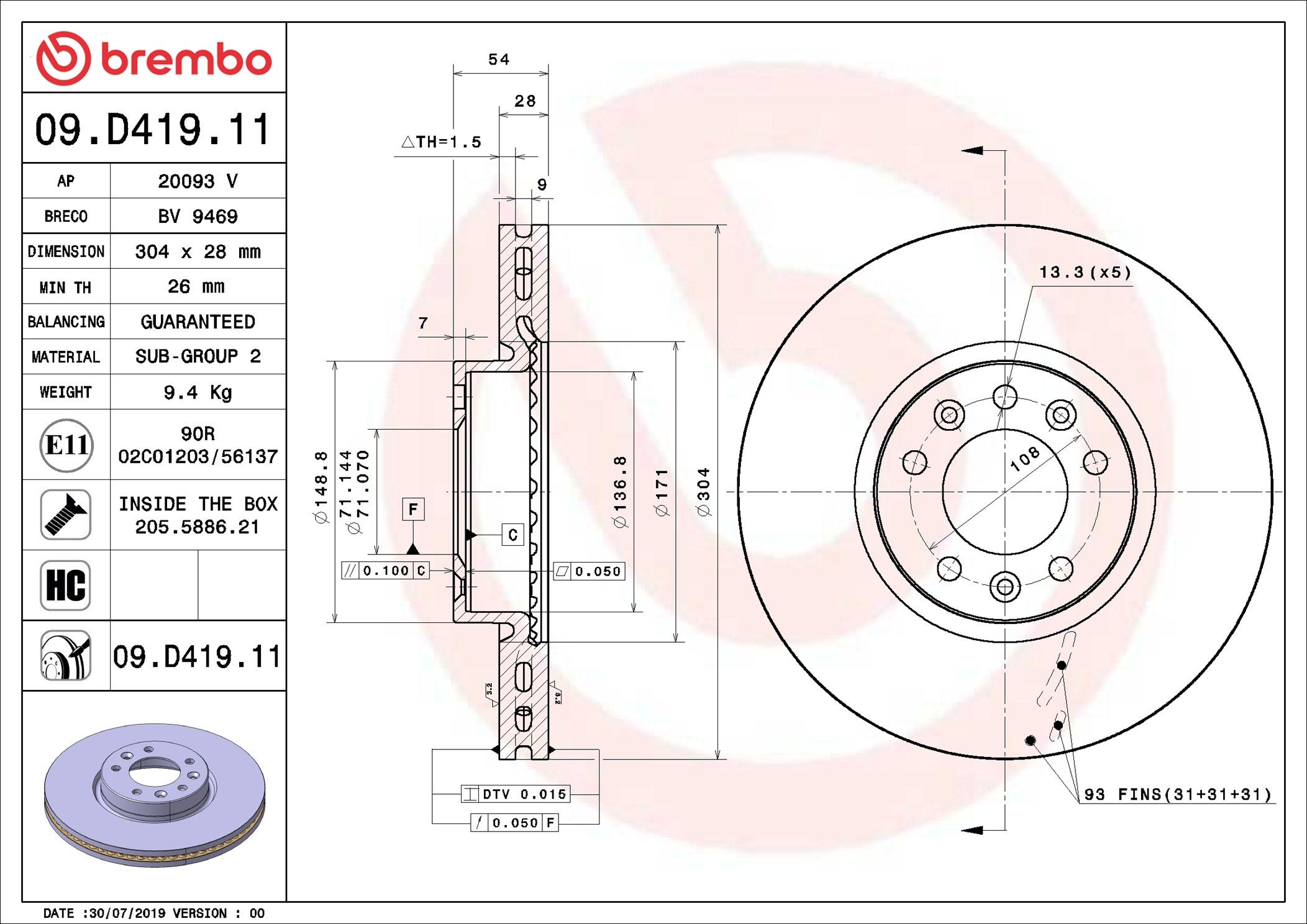 BREMBO 09.D419.11 | Ön Fren Diski Jumper Spacetourer Expert Traveller Proace 1.6 2.0 HDI 16-UV Coated | 2 Adet