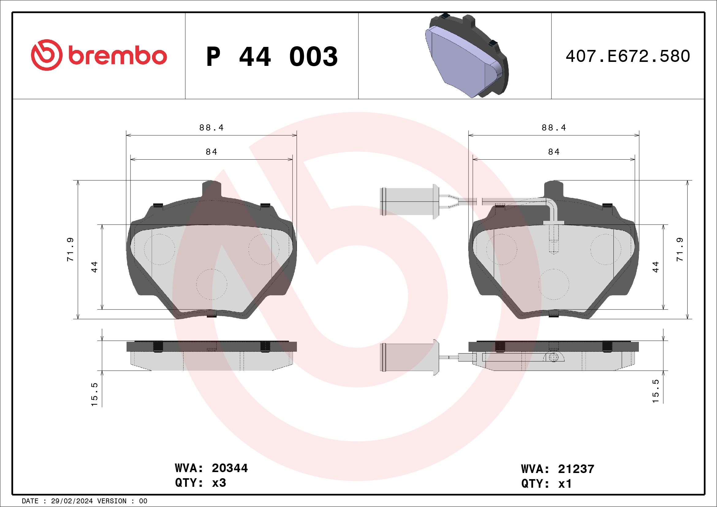 BREMBO P44003 | Fren Balatası Arka Low-Met Land Rover (Fren balata seti, diskli fren)