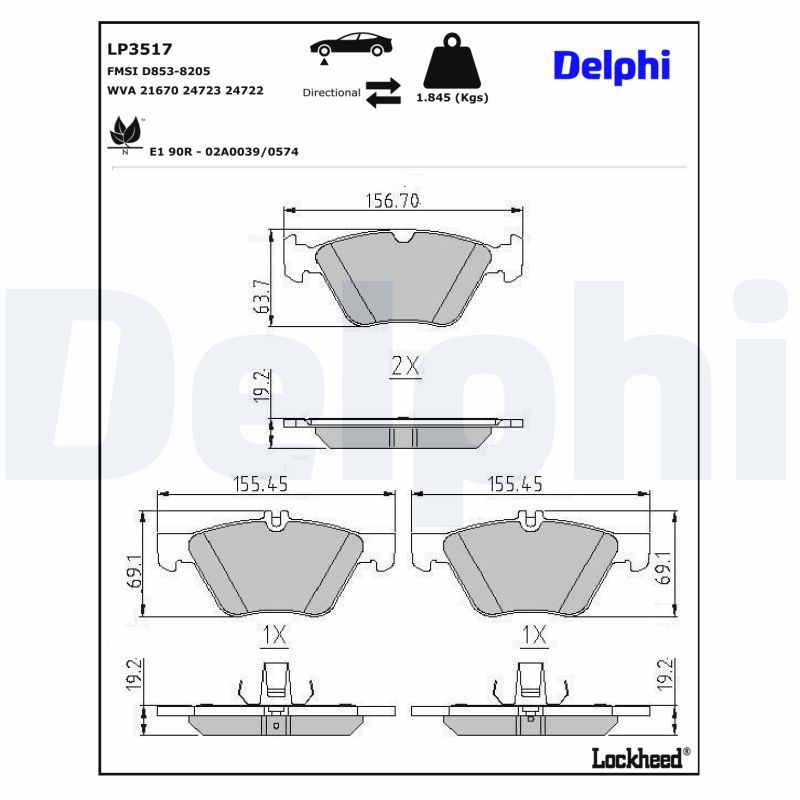 DELPHI LP3517 | Fren Balatası Ön Mercedes W211-W220 4Matic 280-320-350