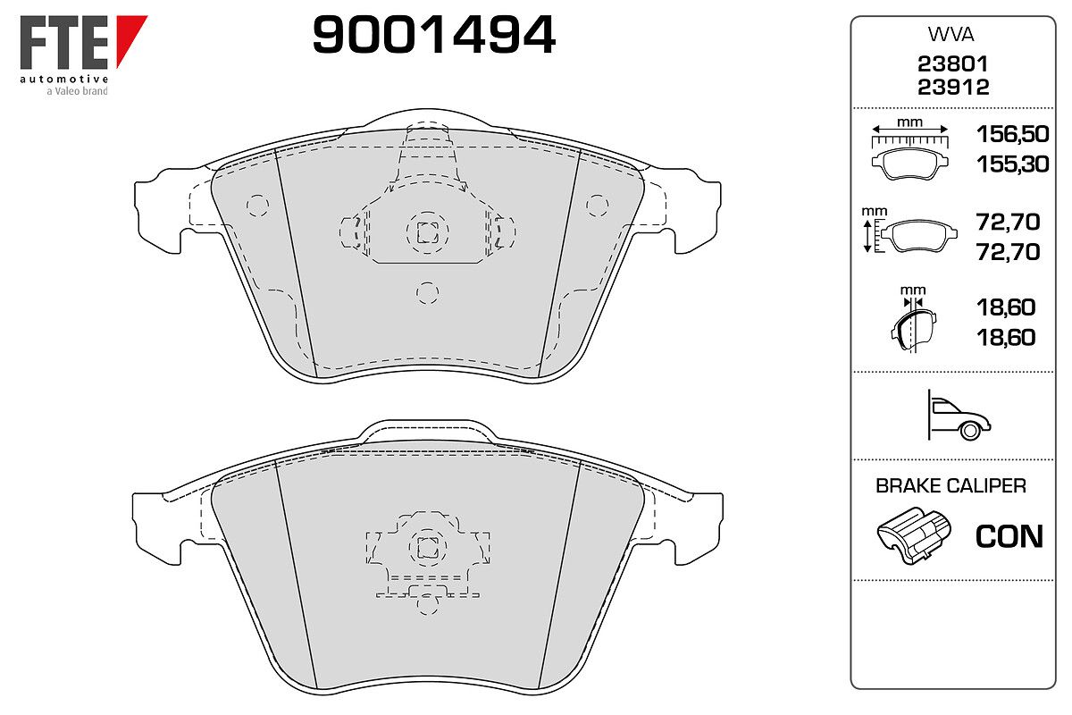 FTE 9001494 | Ön Fren Balatası Vectra C 02-08 02-2.8 V6 / A4 04-08 A6 04-A8 03-/ Exeo 09-/ Focus II 05-11 St / Mazda 3 03-/ 9-3 Volvo S40 II 04-V40 12-V50 04-C30 06-12 C70 II 06 -