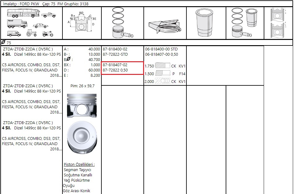 Piston kafası yüksekliği [mm]:8,16 mm